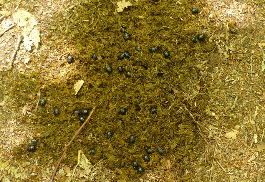Auch heute noch ... ... sind wir im Wald von gestern, denn es gibt dort ja nicht nur Wege zu fotografieren. Was uns sonst noch begegnet ist: Da ist zum einen natürlich der Fingerhut ... ![]() ... den wir gestern öfter mal gesehen haben. Und dann dieses grazile Pflanzengeschöpf ... ![]() ![]() ![]() Da musste ich wieder meine App bemühen ... sie hat "Mauerlattich" gesagt. Wieder was gelernt. Was das ist ... ![]() ... etwas, das gesund sein soll, wenn man sich reinsetzt ;)) ... ein Ameisenhaufen. Dort ist was los. Und es ist nicht der einzige Ameisenhaufen, den wir gesehen haben, auf 30 Meter Weglänge gabs an der einen Stelle sage und schreibe 5 Ameisenhaufen zu sehen. Die nächste Pflanze lebt nicht mehr ... ![]() ... dafür ist sie kunstvoll bearbeitet. Das ist ein Baum, den man umgedreht hat und zu einem Kunstwerk werden ließ. Was uns immer wieder fasziniert ... es gibt Wälder, da wächst zwischen den Bäumen gar nichts. Und dann gibt es welche, die sind Oasen des Grünen: ![]() Und das ... ![]() ... ist ne Pferdekoppel ... eine wunderbar weitläufige Pferdekoppel mit hohem Gras und einem Baum. Jetzt kommen wir zu diesem Weg, den ich gestern schon zeigte ... ![]() ... da musste ich stehen bleiben und diesen Bereich ranzoomen ... ![]() ... damit ich dieses Bild machen kann: ![]() Ein paar Enten haben wir auch gesehen ... ![]() ... einmal direkt ins Bild gesetzt und einmal als Dekoration für den See: ![]() Das nächste Bild ist Scheiße ... im wahrsten Sinne des Wortes ... ... und wo sowas zu finden ist, sind die kleinen schwarzen Mistkäfer nicht weit ... ![]() ... die aus der Scheiße Gold machen ... oder so ähnlich ;). Eben noch Pferdeäpfel ... und nun schon keine Äpfel mehr zu sehen. Weil die Käfer die mit Appetit essen ... ein Äppel a day ... oder so. In diesem Sinne ... :)). |