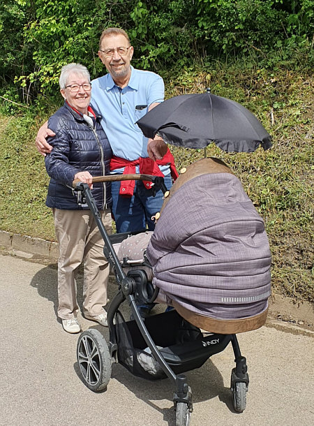 ![]() Wie schön ... Omma und Obba mit der Kleinen ? Nein ... stimmt nicht ... Wie ... Mama und Papa ... so alte Eltern ?? Nein ... stimmt auch nicht ... Das sind Uroma und Uropa mit dem Urenkelchen. Auch wenn man das Ur vorne nicht Uhr schreibt, werden die beiden dennoch liebevoll "Ticktacks" genannt. 72 Jahre ist die Uroma alt. Deren Tochter ist 52 ... deren Tochter 29 ... und nun ist die Urenkelin da. Da sieht man mal, wie toll das ist, wenn die Eltern noch ziemlich jung die Kinder bekommen. Dann sind auch die Großeltern noch nicht zu alt, wenn Enkel und Urenkel da sind. Wenn ich daran denke, dass viele erst mit 40 Mama und Papa werden, dann wird das schwierig, dass die Großeltern noch mit dem Enkelkind durch den Park fahren können. |