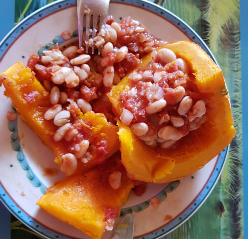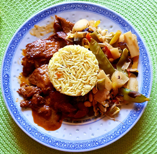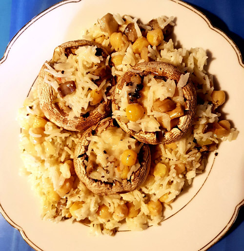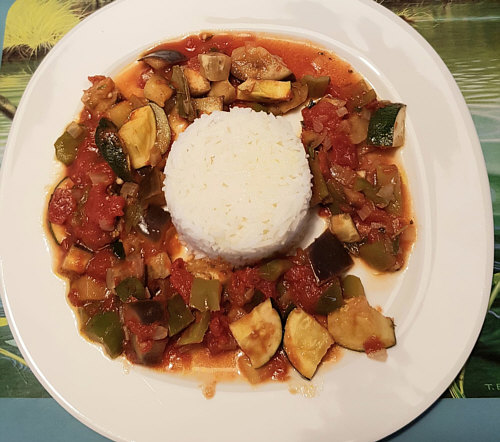 Heute sind wir bei Gerd und Moni zu Gast und lassen uns inspirieren, was wir denn mal lecker vegetarisch kochen können. Bei Moni kocht mal sie selbst, mal der Gerd. Ganze 11 Essen darf ich präsentieren: ![]() Reis-Lauch-Puffer ![]() Vegetarische Ente aus Weizen- und Erbseneiweiß ganz knusprig mit Reis und Gemüse. ![]() Lauch-Nudel-Auflauf ![]() Gefüllter Kürbis ![]() Kichererbsentopf ![]() Bami Goreng mit Räuchertofu ![]() Bandnudeln mit grünem Spargel ![]() Blechgemüse ![]() Spinat-Lasagne mit Topping aus Feta und Cashew, 15 Min. in der Heißluftfriteuse ![]() Gefüllte Champignons Gefüllt mit (Menge für 2 Personen): 110 g Reis 1 TL Instant Gemüsebrühe 8 große Champignons (290 g) 5 EL Olivenöl Meersalz ½ Zwiebel (brutto 60g) 50 g Kichererbsen (gekocht) 1 Crema di Aglio 1 EL Mandelmus ![]() Heute Ratatouille provençale mit Aubergine, Zucchini, grüner Paprika, Zwiebel, Tomaten, Thymian (wichtigstes Gewürz). Danke für all die Inspirationen :)). |