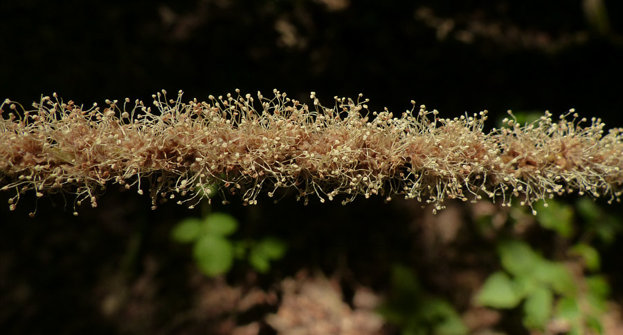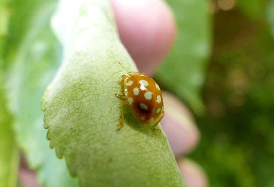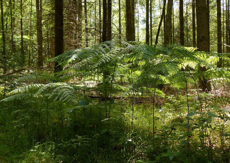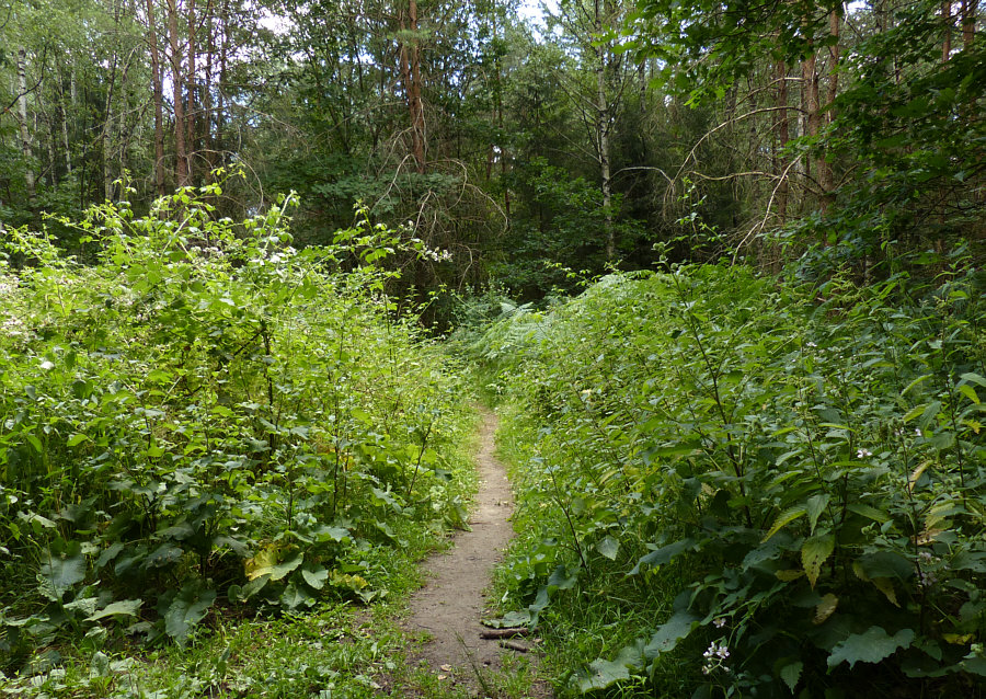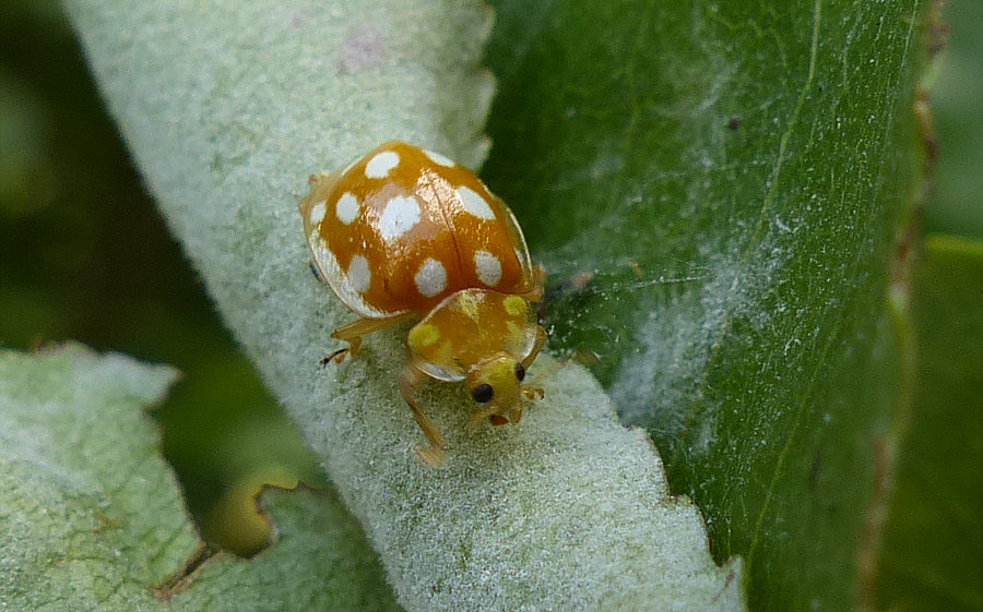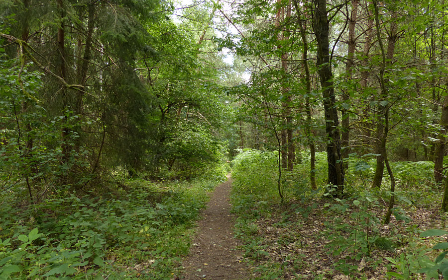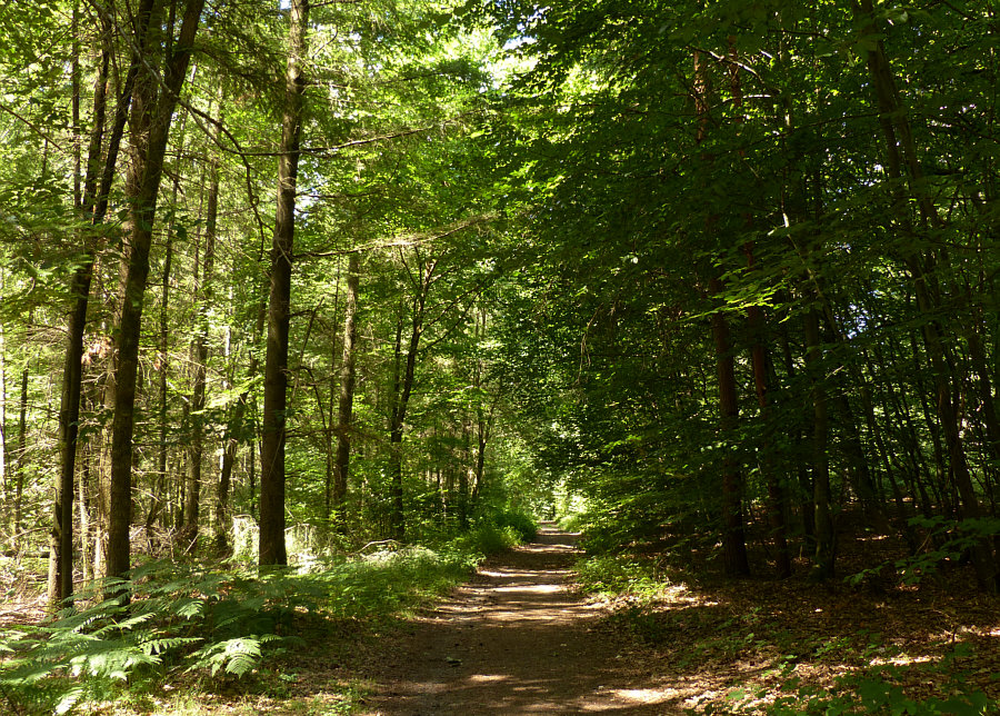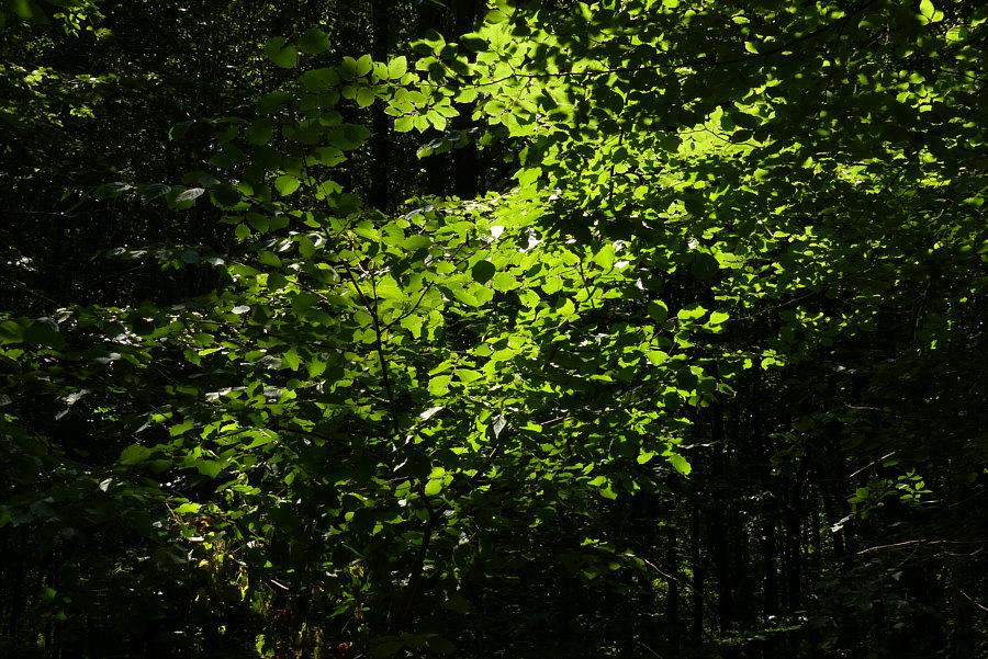 Genau hier ... ![]() ...waren wir stehen geblieben. Genau hier, wo das Grün der Bäume immer noch ... ![]() ... wie frisches Maigrün aussieht. Dank ReginaE weiß ich nun auch, was das für Würmchen sind, die hier im Wald rumliegen ... ![]() ... das sind die männlichen Blütenstände der Edelkastanie, auch Esskastanie genannt. Vielen besser als Maronen bekannt. ![]() ![]() Ein sonnendurchfluteter Wald ... ![]() ... mit schönem Randbewuchs durch Palmen ... ![]() ... pardon ... Farne natürlich ... aber ein bisschen Illusion darf doch sein :). Hachherrje ... nun wirds schwierig ... Beate entdeckt einen Käfer und ich soll/darf ihn fotografieren. Ein Käfer, der immer dann, wenn du die Kamera auf ihn hältst, sich umdreht und dir sein Hinterteil zeigt. ![]() Ganz stressiger Kerl, kann ich Euch sagen ... mit der einen Hand das Blatt halten, mit der anderen Hand fotografieren und mit dem Mund schimpfen, weil der Käfer ständig fortläuft ... unters Blatt ... Blatt wenden ... wieder unters Blatt. Ja, ich weiß, ich darf nicht schimpfen, der Käfer hätte ja auch einfach wegfliegen können. Ich könnte Euch viele unscharfe Bilder zeigen ... ... habe ihn aber auch einmal scharf fotografieren können: ![]() Das ist der Sechzehnfleckige Marienkäfer. Er ist weit verbreitet und in Laubwäldern zu finden. Dort frisst er Mehltau von den Blättern ab. Der könnte mal seine Verwandten zu unserem Phlox schicken ;)). Er wird auch deswegen von Gärtnern als Nützling angesehen. Angeblich soll der Sechzehnfleckige Marienkäfer die Härte des Winters voraussagen können. Überwintert er in einem Astloch oder unter der Rinde eines Baumes, so wird der Winter mild, vergräbt er sich im Laub am Boden, soll der Winter hart werden. Unserer saß auf einem Blatt ... also ... ist es noch kein Winter ;). Ich würde mal sagen, wir gehen weiter ... ![]() Unser Weg führt in einen größeren Weg ... ![]() ... doch für uns kommt jetzt die schönste Zeit ... denn wir gehen nicht rechts, nicht links ... ![]() ... sondern biegen schräg gegenüber ... ![]() ... in diesen schmalen Pfad ab. Da freue ich mich jetzt so richtig drauf. Hier werden wir ganz alleine sein ... kein Mensch wird uns begegnen ... und würden wir uns hinlegen ... ![]() ... wären wir bald wie Dornröschen von Him- und Brombeeren überwuchert. Eine Ranke wächst sogar quer über den Pfad ... ![]() ... bei einem solchen Hindernis sage ich dann immer "Xavier" ... ... Beate lacht dann und weiß genau, was ich meine ;)). Da heißt es dann "mit ruhigen spitzen Fingern das Hindernis zur Seite halten". Wir laufen weiter ... ![]() ... ich liiieeebe diese schmalen Pfade: ![]() Hier müssen wir nochmal stehen bleiben ... und ... ... morgen laufen wir weiter :). |