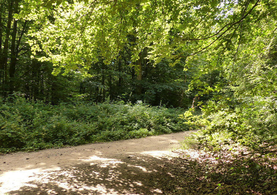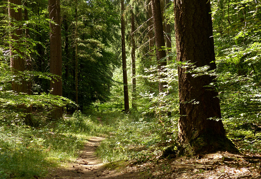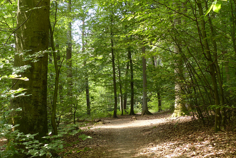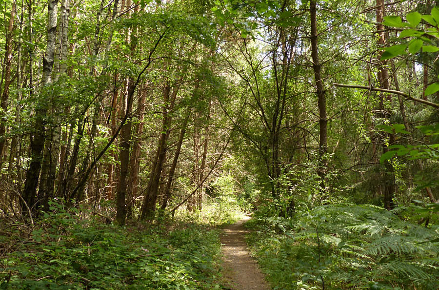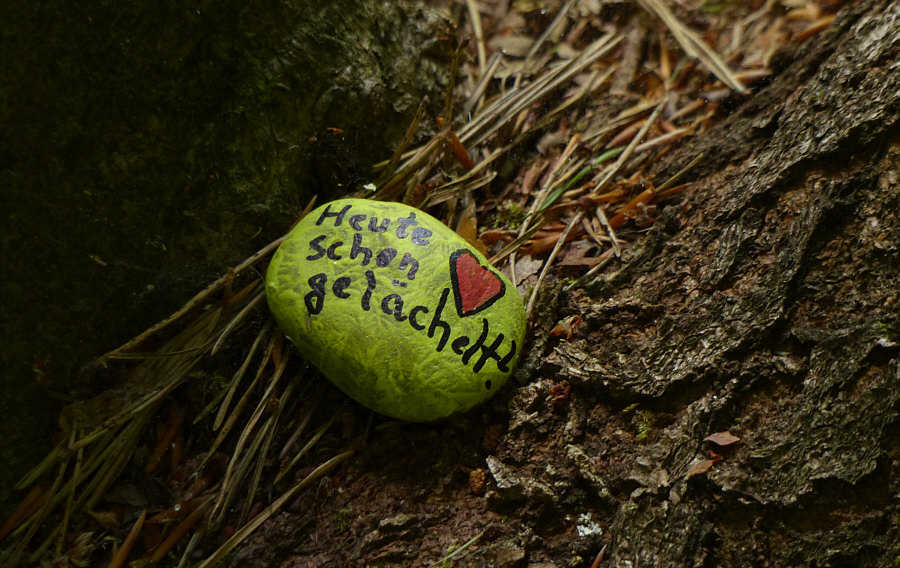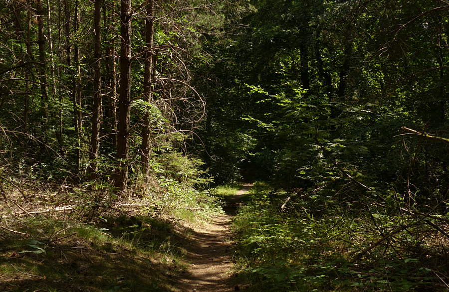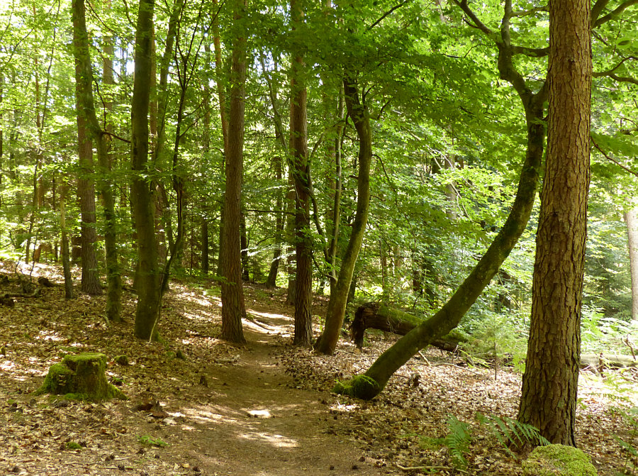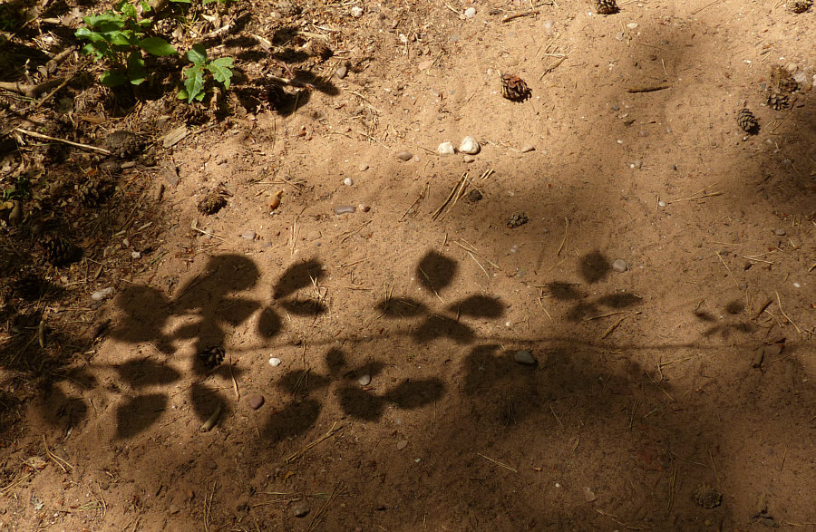 Dieser kleine wunderbare Pfad ... ![]() ... hier haben wir gestern eine kleine Pause gemacht. Heute gehts natürlich weiter. Hui ... da fliegt etwas an uns vorbei ... ![]() ... und setzt sich ganz da hinten auf eine Blume. Da hinten ... die unscharfe Blume ... und das rote Etwas. Bitte - bleib sitzen - öffne dich - beweg dich nicht ... damit ich dich einigermaßen gut fotografieren kann ... hmm ... okay ... ![]() ... besser als nichts. Und fort ist er. Der Schmetterling. Das Tagpfauenauge. Wir gehen weiter ... ![]() ... "lieblich" ist der Wald hier jetzt nicht gerade. Eher urig ... ja das trifft es besser ... oder urwaldig ... wie dieses Bild zeigt: ![]() Ein alter Baum ... mit Moos ist hier ganz schön viel los. Ein wirklich sehr alter Baum, denn man sieht kaum noch ... ![]() ... dass dieser Baum eine Birke ist. Hier links ... ![]() ... sind auch Birken, aber die sind jünger und weißer. Wir gehen weiter ... upps ... lieber umdrehen und zurück blicken ... ![]() ... denn nach vorne sieht es so aus: ![]() Auwei. Jetzt ist Limbo angesagt. Schööön zurücklehnen und dabei langsam nach vorne laufen. Um dann auf dem Hintern sitzen und "Mama" schreien. Nein ... besser bücken ... wie Freddie ... und drunter durch. Sing "wenn der nach vorn fällt" (nach der Melodie von "ein Bett im Kornfeld") *gg*. Aber vor dem Bücken: klicken. Erst mal fotografieren. Die Strukturen des Stammes: ![]() Und nun noch ein Blick auf den schönen Farn im Wald ... ![]() ... und dann irgendwie untendrunter durch. Ziemlich gestrüppig ist hier der Wald ... ![]() ... und eben noch hat Beate zu mir gesagt "hier haben wir noch gar keine Ameisenhaufen gesehen" ... ... und schon ist vor uns einer: ![]() Der "Turm zu Babel" ? Nein ... der "Turm zu Krabbel". Lichterfüllt geht unser Weg weiter ... ![]() Ich zeige Euch mal das gleiche Bild in hochkant ... das sieht man die Größe der Bäume besser ... ![]() ... da kommen wir uns viel kleiner vor. So richtig mitten durch den Wald führt unser Weg nun ... ![]() ... und genau hier finden wir diesen Stein ... ![]() Es ist ein Fragestein ... und in dem Moment, wo man die Frage liest ... ![]() ... ist es klar, welche Antwort man dem Stein gibt. Ihr, liebe Leser, lächelt ja nicht erst hier ... ihr habt ja schon ... siehe Limbo und so ;)). Wir laufen weiter durchs Farnland ... ![]() ... und Immer wieder andere, neue Momentaufnahmen begleiten unseren Weg ... ![]() ... und ... wie schon die Marianne sang ... jeder Weg hat mal ein Ende ... und so auch unser schmaler Pfad ... ![]() ... der hier in einen größeren Weg einmündet. Hier begegnen wir auch wieder anderen Menschen. Die ganze Zeit waren wir ja ganz alleine. ![]() Eigentlich könnten wir hier ja unsere Schuhe ausziehen und barfuß laufen ... ![]() ... durch den feinen Sand. Unser Weg ist nun bald zu Ende ... wir grüßen nochmal das Licht ... ![]() ... und den Schatten ... ![]() ... und erfreuen uns an dieser schönen Welt, in der wir doch leben. |