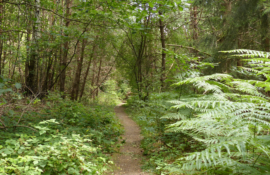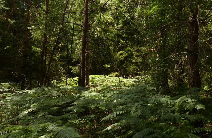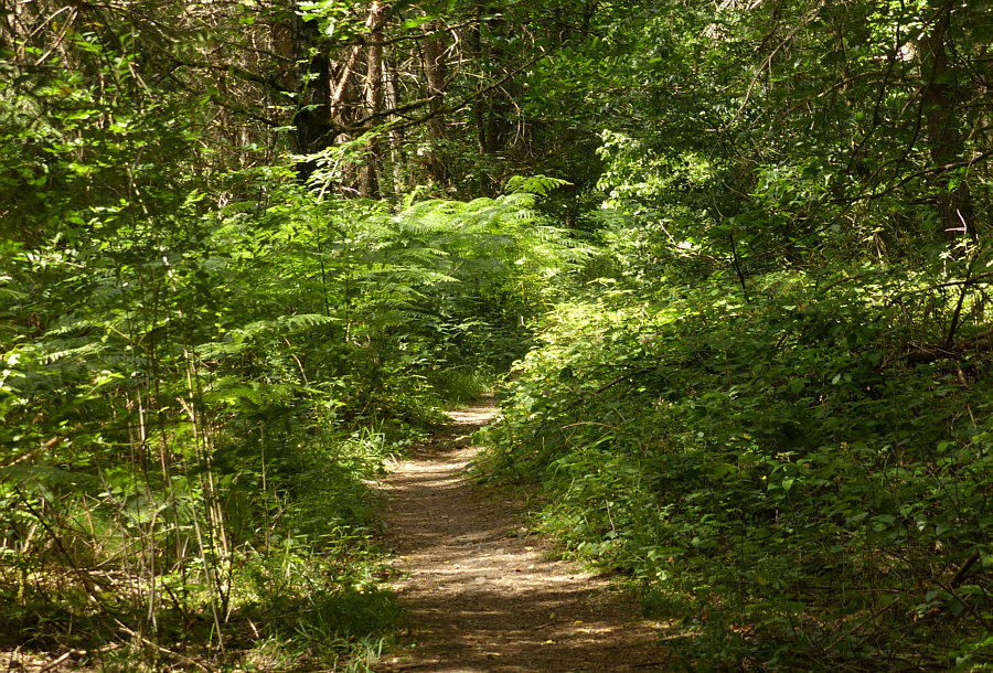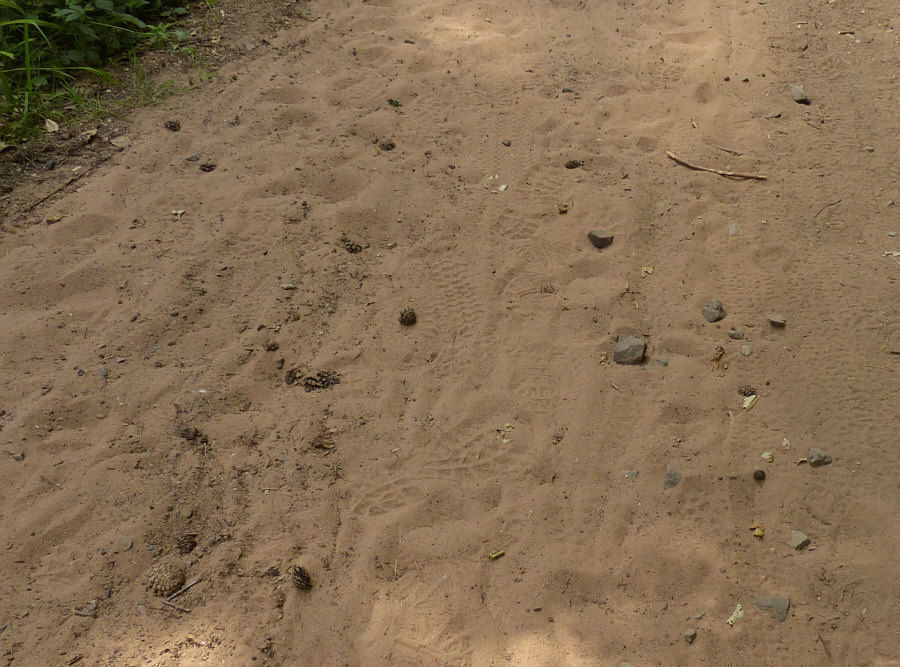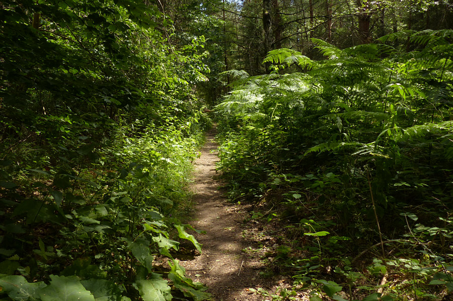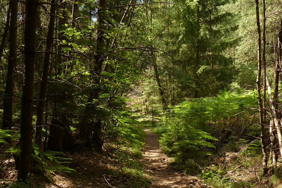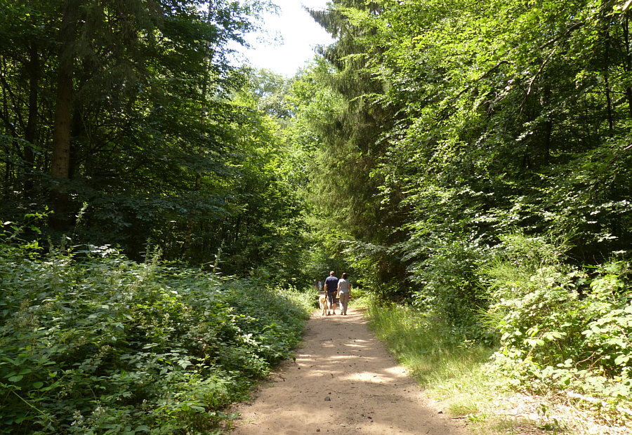 Dieser kleine wunderbare Pfad ... ![]() ... hier haben wir gestern eine kleine Pause gemacht. Heute gehts natürlich weiter. Hui ... da fliegt etwas an uns vorbei ... ![]() ... und setzt sich ganz da hinten auf eine Blume. Da hinten ... die unscharfe Blume ... und das rote Etwas. Bitte - bleib sitzen - öffne dich - beweg dich nicht ... damit ich dich einigermaßen gut fotografieren kann ... hmm ... okay ... ![]() ... besser als nichts. Und fort ist er. Der Schmetterling. Das Tagpfauenauge. Wir gehen weiter ... ![]() ... "lieblich" ist der Wald hier jetzt nicht gerade. Eher urig ... ja das trifft es besser ... oder urwaldig ... wie dieses Bild zeigt: ![]() Ein alter Baum ... mit Moos ist hier ganz schön viel los. Ein wirklich sehr alter Baum, denn man sieht kaum noch ... ![]() ... dass dieser Baum eine Birke ist. Hier links ... ![]() ... sind auch Birken, aber die sind jünger und weißer. Wir gehen weiter ... upps ... lieber umdrehen und zurück blicken ... ![]() ... denn nach vorne sieht es so aus: ![]() Auwei. Jetzt ist Limbo angesagt. Schööön zurücklehnen und dabei langsam nach vorne laufen. Um dann auf dem Hintern sitzen und "Mama" schreien. Nein ... besser bücken ... wie Freddie ... und drunter durch. Sing "wenn der nach vorn fällt" (nach der Melodie von "ein Bett im Kornfeld") *gg*. Aber vor dem Bücken: klicken. Erst mal fotografieren. Die Strukturen des Stammes: ![]() Und nun noch ein Blick auf den schönen Farn im Wald ... ![]() ... und dann irgendwie untendrunter durch. Ziemlich gestrüppig ist hier der Wald ... ![]() ... und eben noch hat Beate zu mir gesagt "hier haben wir noch gar keine Ameisenhaufen gesehen" ... ... und schon ist vor uns einer: ![]() Der "Turm zu Babel" ? Nein ... der "Turm zu Krabbel". Lichterfüllt geht unser Weg weiter ... ![]() Ich zeige Euch mal das gleiche Bild in hochkant ... das sieht man die Größe der Bäume besser ... ![]() ... da kommen wir uns viel kleiner vor. So richtig mitten durch den Wald führt unser Weg nun ... ![]() ... und genau hier finden wir diesen Stein ... ![]() Es ist ein Fragestein ... und in dem Moment, wo man die Frage liest ... ![]() ... ist es klar, welche Antwort man dem Stein gibt. Ihr, liebe Leser, lächelt ja nicht erst hier ... ihr habt ja schon ... siehe Limbo und so ;)). Wir laufen weiter durchs Farnland ... ![]() ... und Immer wieder andere, neue Momentaufnahmen begleiten unseren Weg ... ![]() ... und ... wie schon die Marianne sang ... jeder Weg hat mal ein Ende ... und so auch unser schmaler Pfad ... ![]() ... der hier in einen größeren Weg einmündet. Hier begegnen wir auch wieder anderen Menschen. Die ganze Zeit waren wir ja ganz alleine. ![]() Eigentlich könnten wir hier ja unsere Schuhe ausziehen und barfuß laufen ... ![]() ... durch den feinen Sand. Unser Weg ist nun bald zu Ende ... wir grüßen nochmal das Licht ... ![]() ... und den Schatten ... ![]() ... und erfreuen uns an dieser schönen Welt, in der wir doch leben. |
