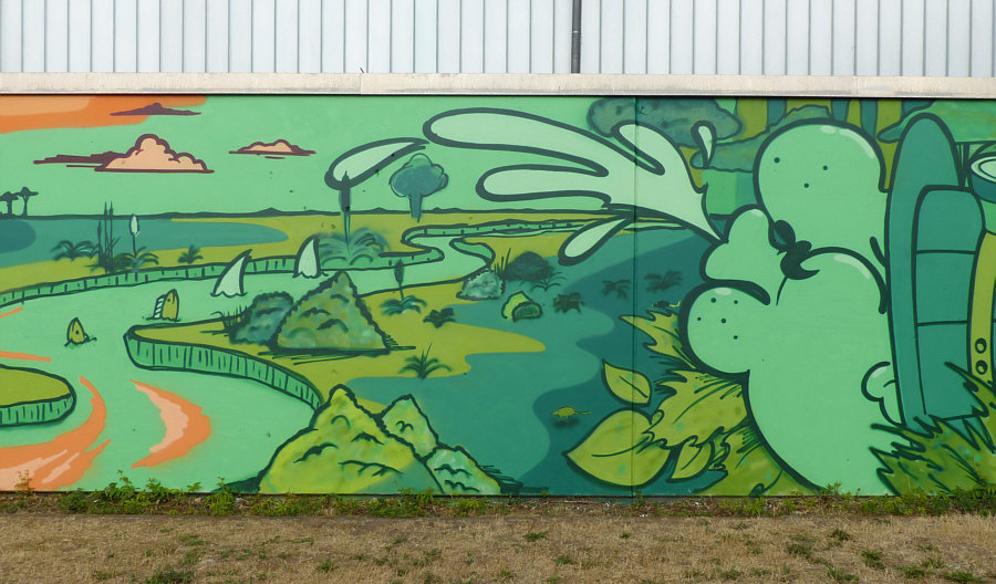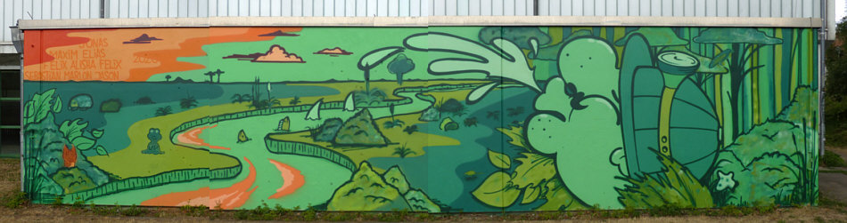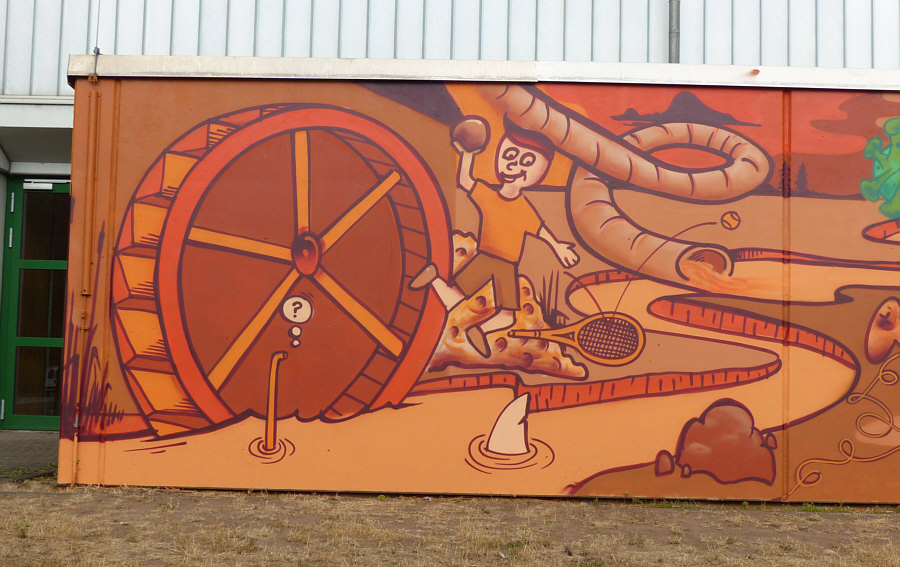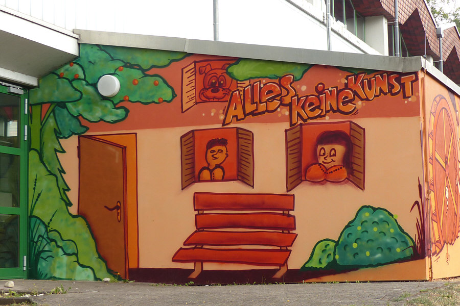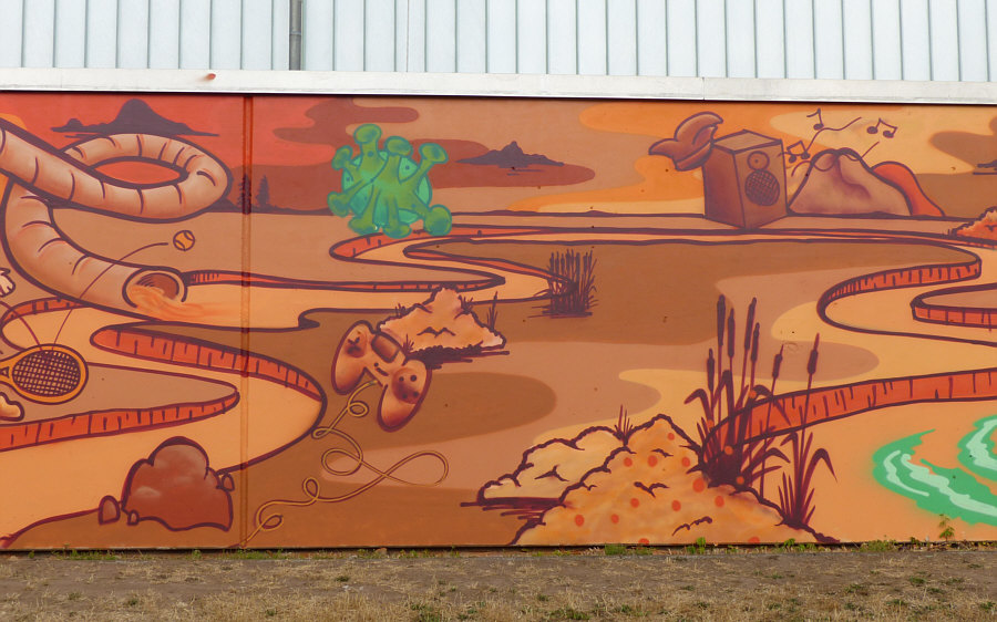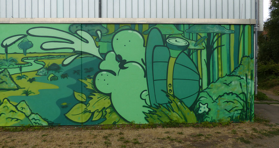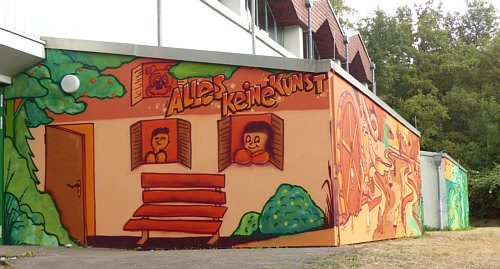 Alles keine Kunst ? Hey ihr da ... ![]() ... da bin ich aber anderer Meinung. Aber ich lasse das dennoch meine Leser entscheiden, ob das Kunst ist, was ich da gestern gesehen habe: ![]() Das sind zwei Vorbauten zu einer Halle, die bemalt wurden. Ich zeige alle Malereien ... erst vorne, dann von links nach rechts. ![]() Die linke Seite zuerst im Panorama, dann einzeln: ![]() ![]() ![]() ![]() Nun zur rechten, grünen Seite ... auch hier erst das Panorama, dann einzeln: ![]() ![]() ![]() ![]() ![]() Alles keine Kunst ? |