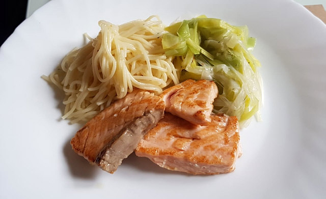 "La Laspa"-Teller ... Lachs, Lauch und Spaghetti.