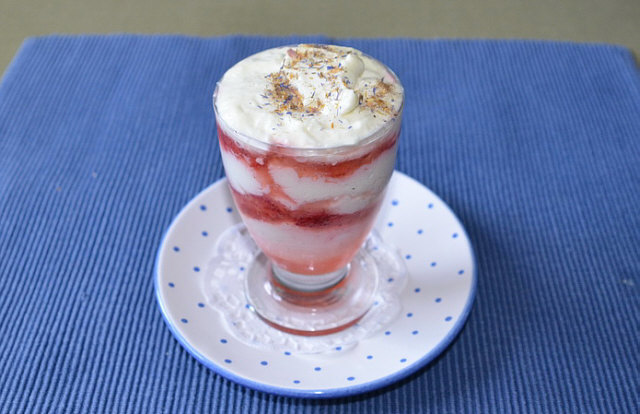 Erdbeerdessert ... bei der Torte, die ich gemacht habe, ist mir Creme