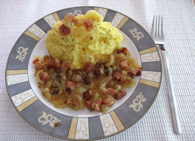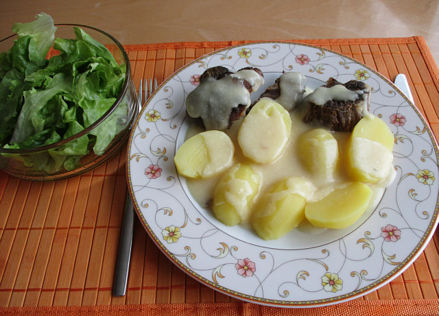 Spontanes Mittagessen mit Kartoffelsalat aus Pellkartoffeln vom Sonntag