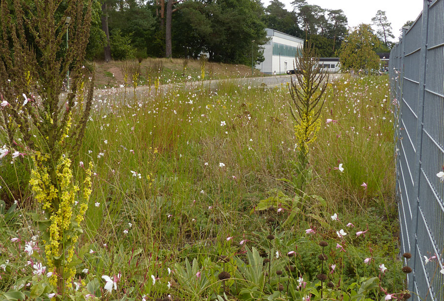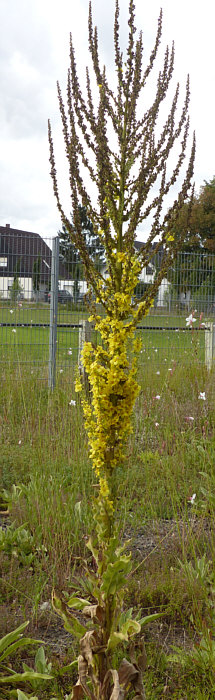Es könnte sein ... ![]() ... dass das ein öffentliches Grundstück ist und der Gemeinde gehört. Oder dem Sportverein. Hier von der anderen Seite: ![]() Hier blühen zu diesem Zeitpunkt eigentlich nur zwei Pflanzen. ![]() ![]() ![]() Das ist die "kleinblütige Königskerze". Andere Namen: "Marienkerze, Frauenkerze, Wollblume, Kleinblütiges Wollkraut, Himmelsbrand, Fackelkraut, Wetterkerze, Feldkerze, Brennkraut". Die andere Blume: ![]() ![]() ![]() Das ist eine Prachtkerzenart. Also zweimal blühende Kerzen jeweils verschiedener Art. Meine Frage an Dich ist ... wenn Du gegenüber dieses Grundstückes ... ![]() ... wohnen würdest ... wäre das für Dich ein eher unansehnlicher Anblick ? Wäre das eher eine visuelle Belästigung für Dich ? Oder wäre es eine Bereichung, das zu sehen ? Oder noch anders ? |