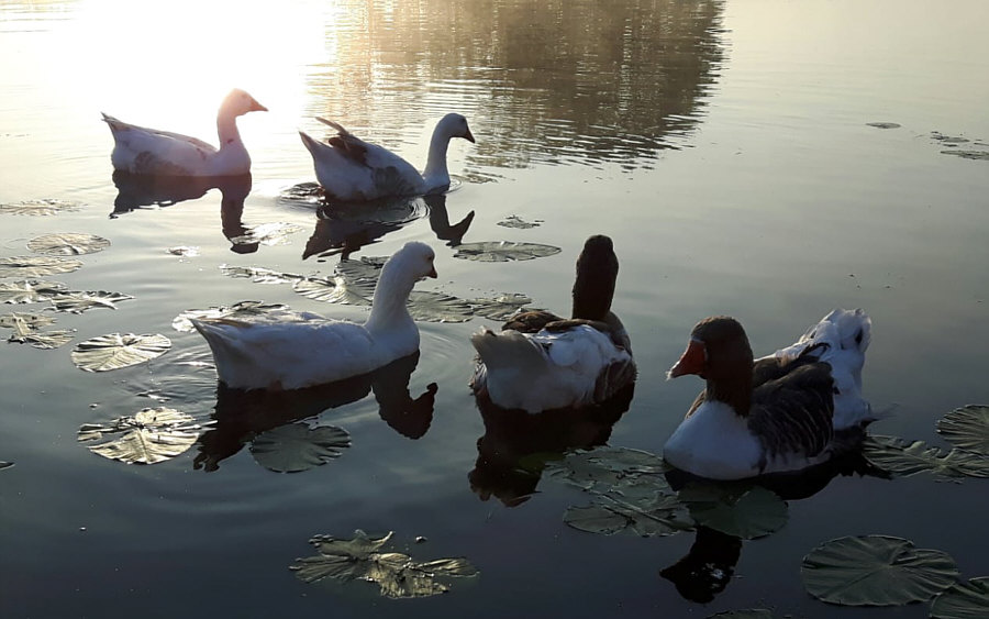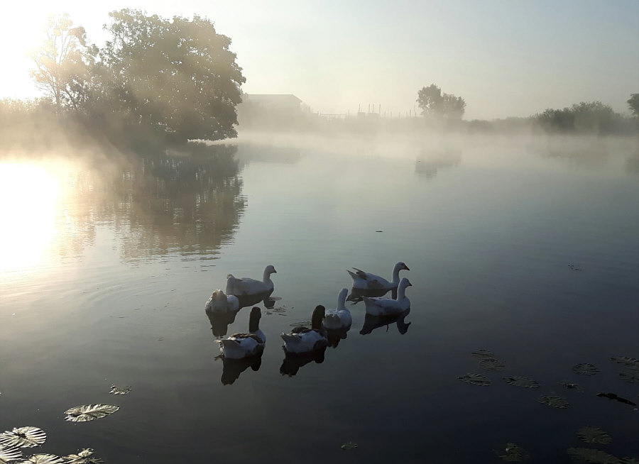 Diese Bilder passen so gut zum Wochenanfang. Zu einer neuen, noch ganz unberührten Woche. Die Sonntagsnacht geht am Montag Morgen schlafen. Der Tag erwacht mit erstem Licht. Minuten ... so sanft, so unschuldig, so voller natürlicher Reinheit. Gitta nutzt auf dem Campingplatz diese Minuten oft, und geht in aller Frühe des Morgens zum Bootssteg, um "ihren Gänsen" guten Morgen zu sagen. Alle sieben Gänse tauchen dann mit den ersten Sonnenstrahlen aus dem Dunst der Eider auf. ![]() ![]() ![]() ![]() Und der Tag erwacht Er überreicht dir ein leeres Blatt und einen neuen Stift |