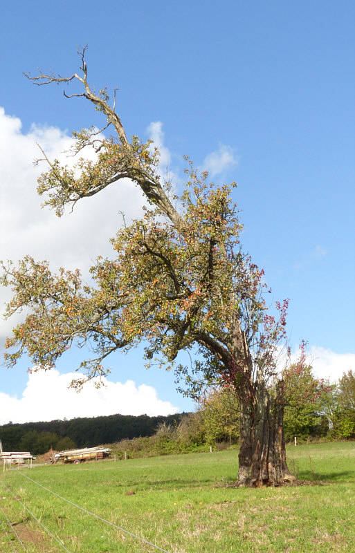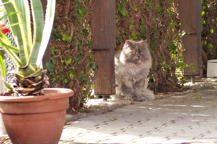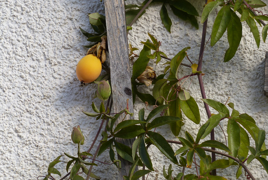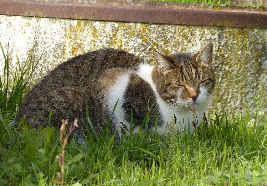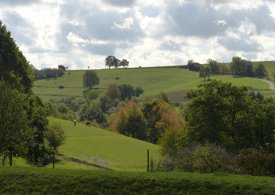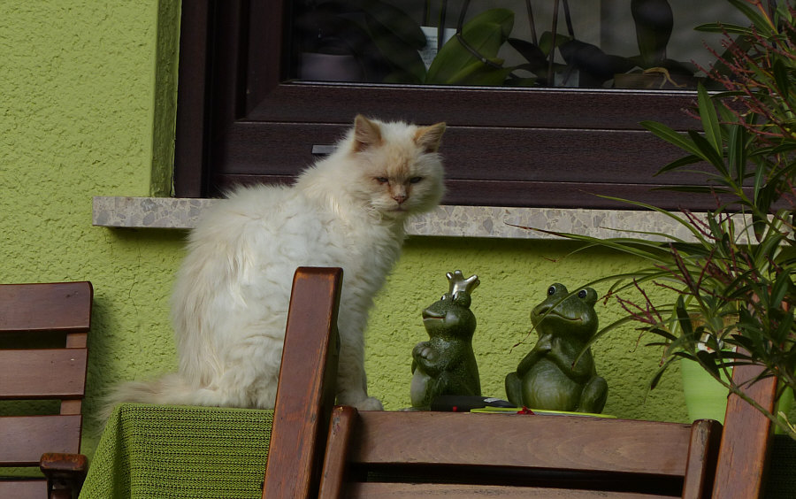 So ein heile-Welt-Bild wie letztens im Tagebuch ... ![]() ... muss ich unbedingt größer zeigen: ![]() Fotografiert außerhalb des Ortes Börsborn bei einem Spaziergang am Samstag. Das war wirklich ein Stück heile Welt ... ich hab das Bild auch mit mehr Drumrum: ![]() Das war außerhalb vom Ort ... unser Weg führt nun wieder in den Ort hinein, doch kurz zuvor sehe ich noch diesen Apfelbaum ... ![]() ... der schon vieles erlebt haben muss. Einst ein großer mächtiger Baum, steht nur noch ein Fragment von ihm da. Aber das trägt immer noch Früchte ... ![]() ... und beim näheren Hinschauen dann die Überraschung: es ist ein Birnbaum. Wir gehen nun in den Ort hinein ... es ist ein Ort der Katzen. Mit seinen gut 400 Einwohnern kein großer Ort, aber wir haben einige Katzen gesehen: ![]() Auch, solche die Frösche nicht leiden können und ziemlich griesgrämig schauen. Dafür blüht noch so manche Rose wunderschön ... ![]() ... man muss sich dann der Rose zuliebe schon die Mühe machen, sie so zu fotografieren, dass der Hintergrund die Blüte gut zur Geltung kommen lässt. Die nächste Rose ... ziemlich außergewöhnlich ... ![]() ... denn sie trägt ein feines lila Kleid. Um die nächste Ecke ist die nächste Katze zu finden ... ![]() ... und einen Hund gabs auch: ![]() Ihr ahnt nicht, mit welcher Intensität und mit welchen Tönen er dann kurz nach dem Fotografieren laut gegeben hat ... wir sind schnell weiter, bevor die ganze Nachbarschaft zusammenläuft ;)). Die nächste Katze hätte ich nie im Leben gesehen ... ![]() ... doch Beates Adlerauge hat sie im Halbdunkel des Carports gesehen. Beim nächsten Bild habe ich ganz vergessen ... ![]() ... den blauen Blümchen links unten auch Aufmerksamkeit zu geben, weil mich das in der Mitte fasziniert hat ... ![]() ... welche Frucht das ist, da wäre ich nie drauf gekommen, wenn nicht auch diese Blüte wäre ... ![]() ... es ist eine Maracuja/Passionsfrucht. Die Sonne lacht immer wieder an diesem Tag ... ![]() ... und die nächste Katze sitzt schon da: ![]() Den Abschluss macht eine Rose ... ![]() ... schöner kann man nicht verblühen. Außerhalb des Ortes musste ich noch mal anhalten für die folgenden Bilder ... ![]() ... 5 Tiere sind auf dem Bild zu sehen. ![]() Es sind Esel, die hier ... ![]() ... in einer angenehmen Weite leben dürfen. Und ... es schließt sich der Kreis ... da ist sie wieder, die heile Welt. |