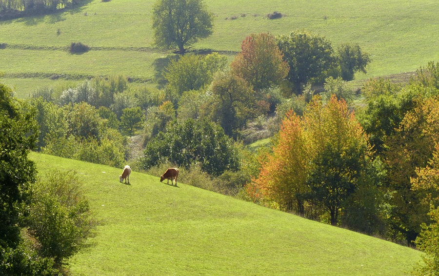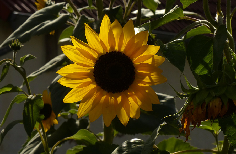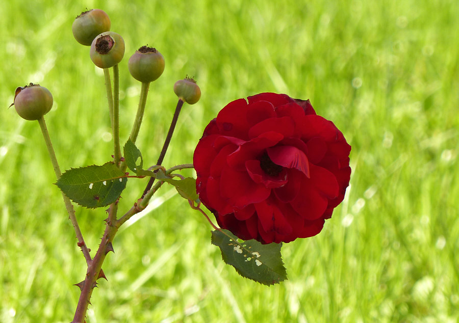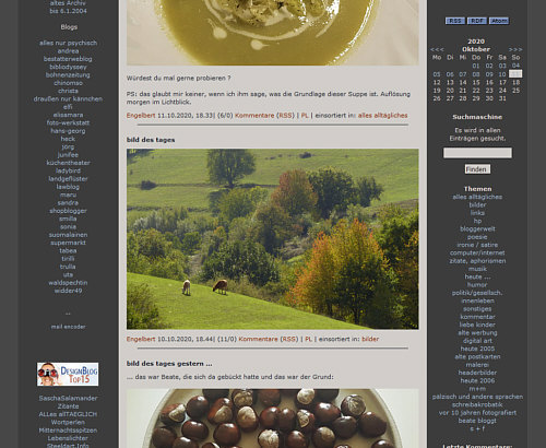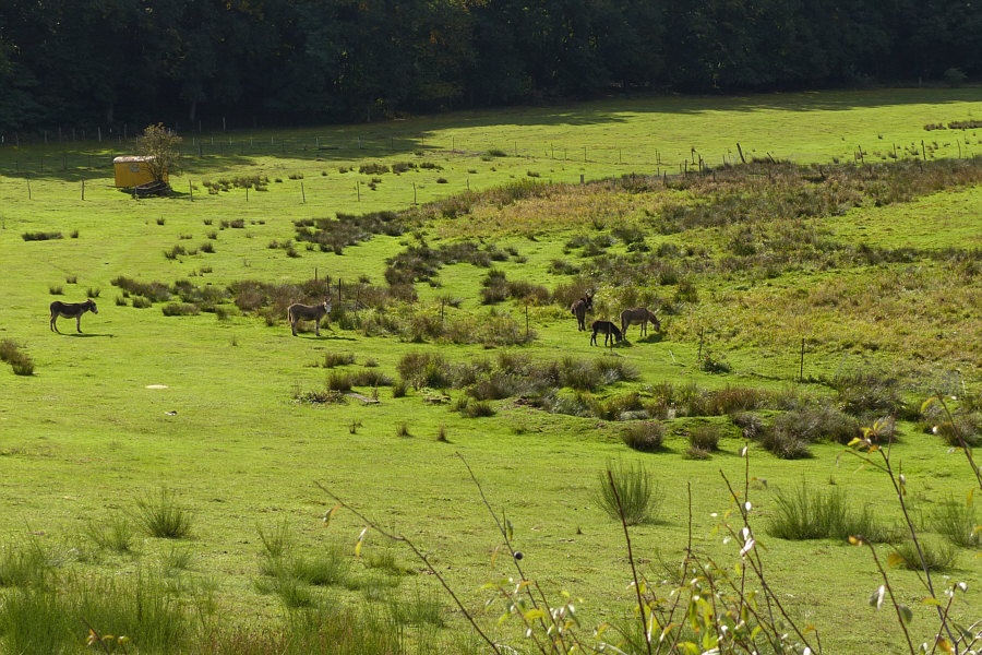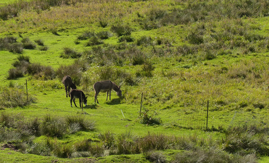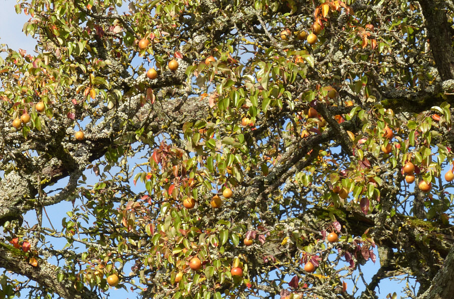 So ein heile-Welt-Bild wie letztens im Tagebuch ... ![]() ... muss ich unbedingt größer zeigen: ![]() Fotografiert außerhalb des Ortes Börsborn bei einem Spaziergang am Samstag. Das war wirklich ein Stück heile Welt ... ich hab das Bild auch mit mehr Drumrum: ![]() Das war außerhalb vom Ort ... unser Weg führt nun wieder in den Ort hinein, doch kurz zuvor sehe ich noch diesen Apfelbaum ... ![]() ... der schon vieles erlebt haben muss. Einst ein großer mächtiger Baum, steht nur noch ein Fragment von ihm da. Aber das trägt immer noch Früchte ... ![]() ... und beim näheren Hinschauen dann die Überraschung: es ist ein Birnbaum. Wir gehen nun in den Ort hinein ... es ist ein Ort der Katzen. Mit seinen gut 400 Einwohnern kein großer Ort, aber wir haben einige Katzen gesehen: ![]() Auch, solche die Frösche nicht leiden können und ziemlich griesgrämig schauen. Dafür blüht noch so manche Rose wunderschön ... ![]() ... man muss sich dann der Rose zuliebe schon die Mühe machen, sie so zu fotografieren, dass der Hintergrund die Blüte gut zur Geltung kommen lässt. Die nächste Rose ... ziemlich außergewöhnlich ... ![]() ... denn sie trägt ein feines lila Kleid. Um die nächste Ecke ist die nächste Katze zu finden ... ![]() ... und einen Hund gabs auch: ![]() Ihr ahnt nicht, mit welcher Intensität und mit welchen Tönen er dann kurz nach dem Fotografieren laut gegeben hat ... wir sind schnell weiter, bevor die ganze Nachbarschaft zusammenläuft ;)). Die nächste Katze hätte ich nie im Leben gesehen ... ![]() ... doch Beates Adlerauge hat sie im Halbdunkel des Carports gesehen. Beim nächsten Bild habe ich ganz vergessen ... ![]() ... den blauen Blümchen links unten auch Aufmerksamkeit zu geben, weil mich das in der Mitte fasziniert hat ... ![]() ... welche Frucht das ist, da wäre ich nie drauf gekommen, wenn nicht auch diese Blüte wäre ... ![]() ... es ist eine Maracuja/Passionsfrucht. Die Sonne lacht immer wieder an diesem Tag ... ![]() ... und die nächste Katze sitzt schon da: ![]() Den Abschluss macht eine Rose ... ![]() ... schöner kann man nicht verblühen. Außerhalb des Ortes musste ich noch mal anhalten für die folgenden Bilder ... ![]() ... 5 Tiere sind auf dem Bild zu sehen. ![]() Es sind Esel, die hier ... ![]() ... in einer angenehmen Weite leben dürfen. Und ... es schließt sich der Kreis ... da ist sie wieder, die heile Welt. |