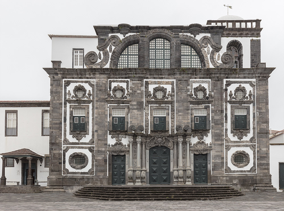 Auflösung Sonntagskirche vom 18. Oktober ![]() Die Auflösung gibts hier im Kalenderblatt, weil ich hier die Bilder größer zeigen kann. Und so schauen wir uns den Altar immer näher an: ![]() ![]() ![]() ![]() ![]() Jetzt könnte man sagen "was zuviel ist, ist zuviel". Man könnte auch sagen "was für eine grandiose Kunst". Man kann sogar beides sagen. Das zu erschaffen ... es ist der Wahnsinn. Etwas tiefer haben wir etwas blaues gesehen ... ![]() ... und auch das schauen wir uns genauer an: ![]() Blaue Fliesen ... sind wir denn in Portugal. Ja ... jein. Kommen wir gleich dazu. Widmen wir uns zuerst einem der Seitenaltäre: ![]() Was woanders der Hauptaltar und der große Star der Kirche wäre, ist hier "nur" ein Seitenalter. Ich hab ein ganz aktuelles Bild des Innenraum ... ![]() ... die Kirche mit Corona-Bestuhlung. Hätte ich auch als Sonntagskirchenbild bringen können, aber dann hätte es vor allem Corona-Kommentare gegeben. Gehen wir nochmal nach vorne und schauen vom Altar aus zurück: ![]() Na, das ist nun doch etwas ernüchternd. Kaum was von der reichhaltigen Barockausstattung zu sehen. Eine Stadt, die knapp 70.000 Einwohner hat. Und wunderbar angenehme Temperaturen. Im Sommer 25 Grad tagsüber, 18 Grad nachts. Im Winter 17 Grad tagsüber und 11 Grad nachts. Portugal jein ? Ja, wir sind in Portugal ... aber nicht in dem Portugal, das neben Spanien liegt. Sondern knapp 1400 Kilometer weiter westlich im Atlantik. Wir sind in Ponta Delgada, der Hauptstadt der Azoren. Die Kirche ist die "Igreja de Todos-os-Santos". Die Kirche ist eigentlich eine Jesuitenkirche, aber die Jesuiten wurden irgendwann vertrieben. Nun zum Bild von außen ... da ist die Fassada auch eine Barockfassade. Die mit geschwungenen Giebeln verzierte Front aus grauem Vulkangestein gilt als eine der schönsten Fassaden der Azoren. So sieht die Kirche von außen aus: ![]() Innen war ich ja von der Kunst begeistert ... beim Außenbild bin ich überrascht, dass das eine der schönsten Fassaden sein soll, sogar das schönste Bauwerk der Stadt im Barockstil sein. Diese Bilder musste ich in "so groß wie möglich zeigen", deswegen im Kalenderblatt. Eine ganz außergewöhnliche Sonntagskirche. |