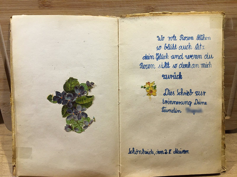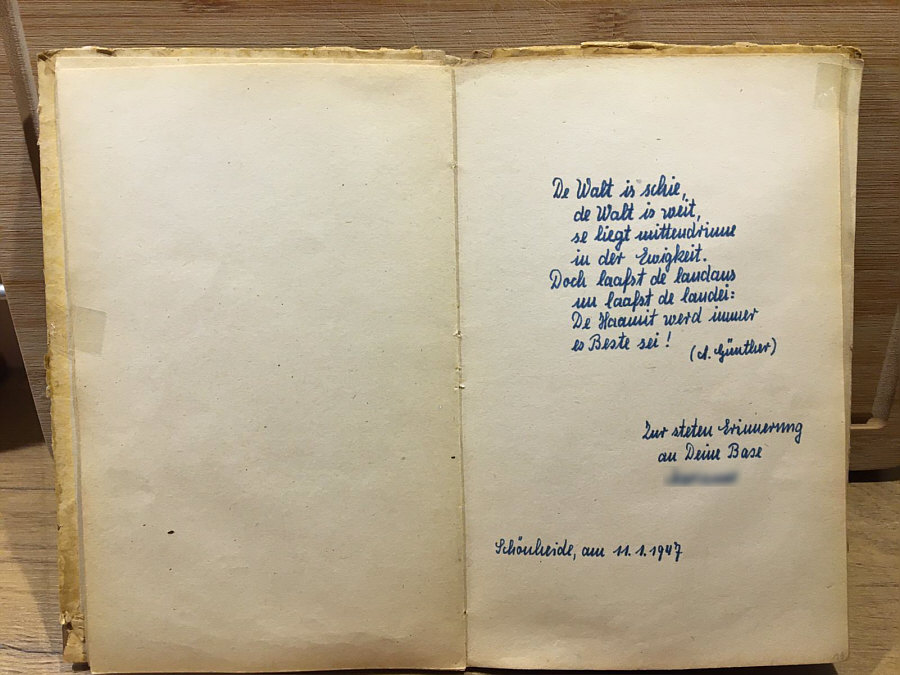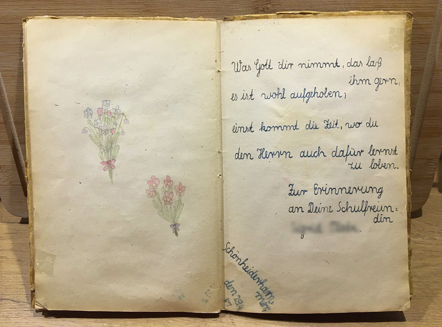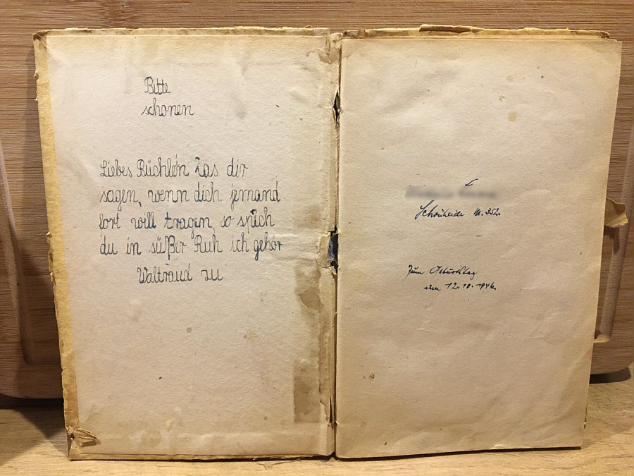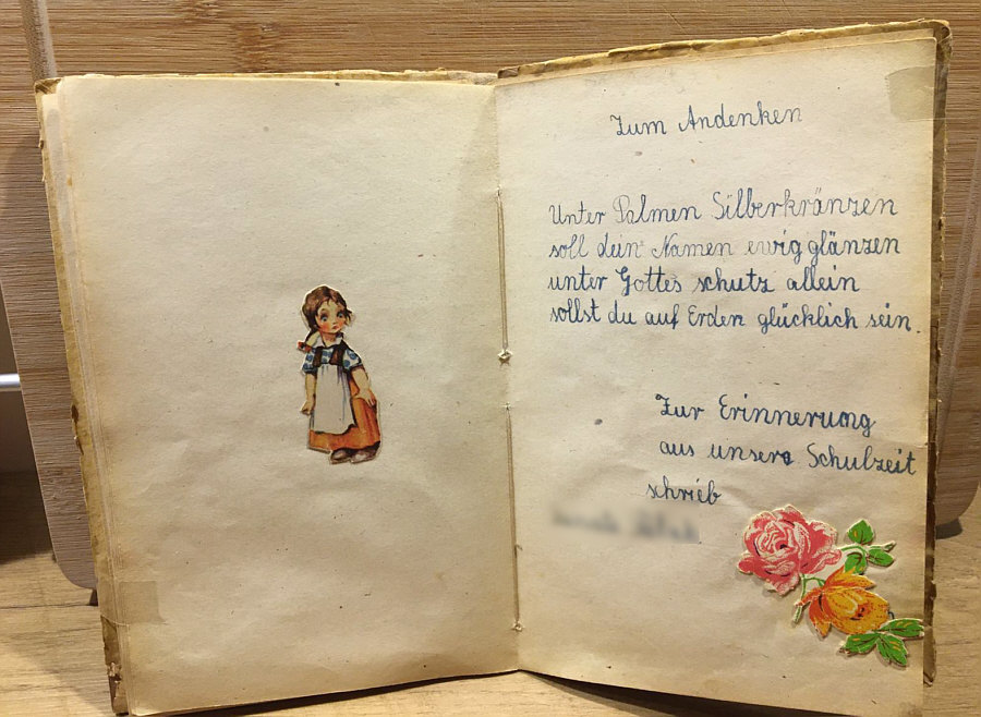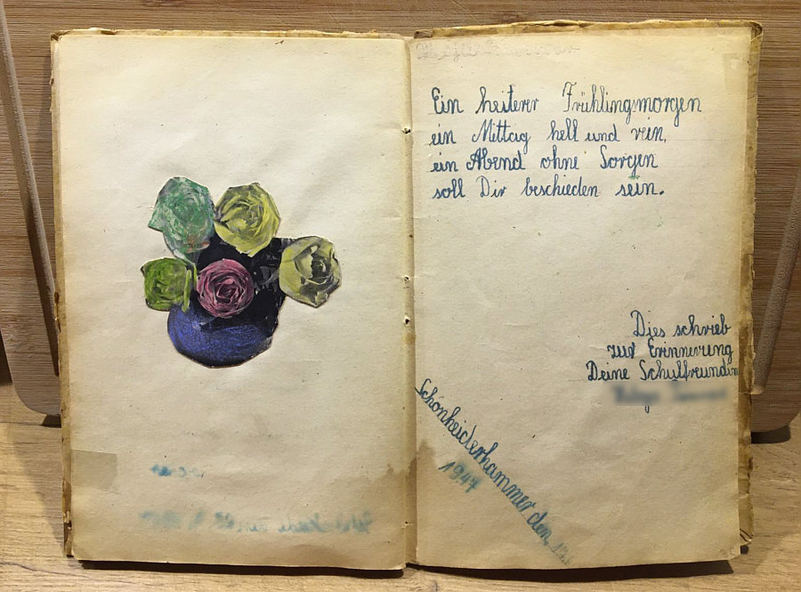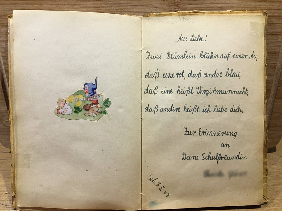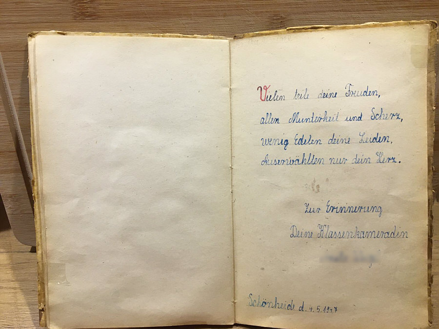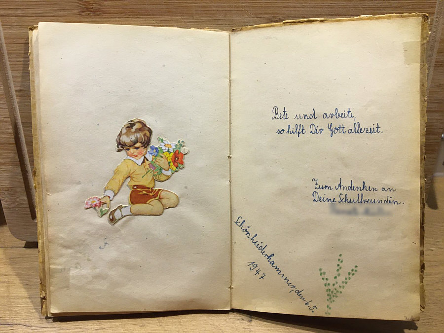 Katrins ganz großer Schatz Teil 2 ![]() Rechts, das ist das Poesiealbum von Katrin ... aus dem Jahr 1977. In der Mitte ist das Poesiealbum von Katrins Mutter ... aus dem Jahr 1946. Und links das ist das Poesie-Album von Katrins Oma ... aus dem Jahr 1919. Heute blättern wir im Album von 1946: ![]() Und jetzt schauen wir da mal rein: ![]() ![]() ![]() ![]() ![]() ![]() ![]() ![]() ![]() ![]() ![]() ![]() ![]() |