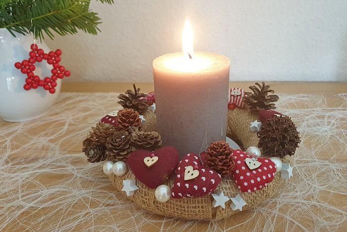 sondern kann ihn auch hinlegen mit einer Kerze in der Mitte: