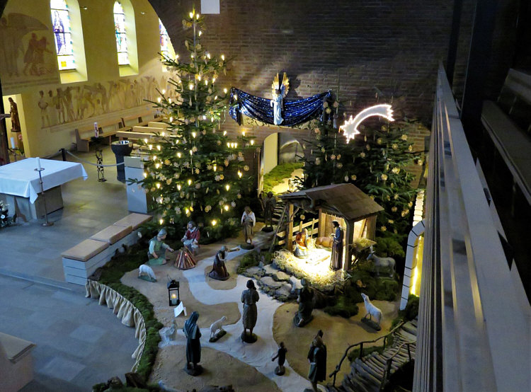 die ein Drittel des Altarraums einnimmt und detailreich die Geburt Jesu