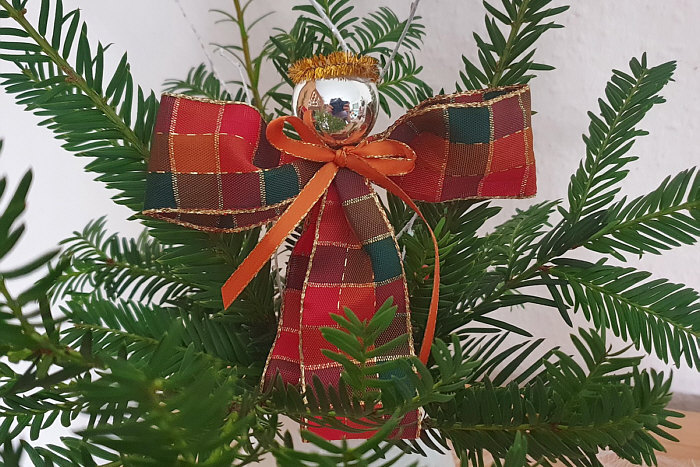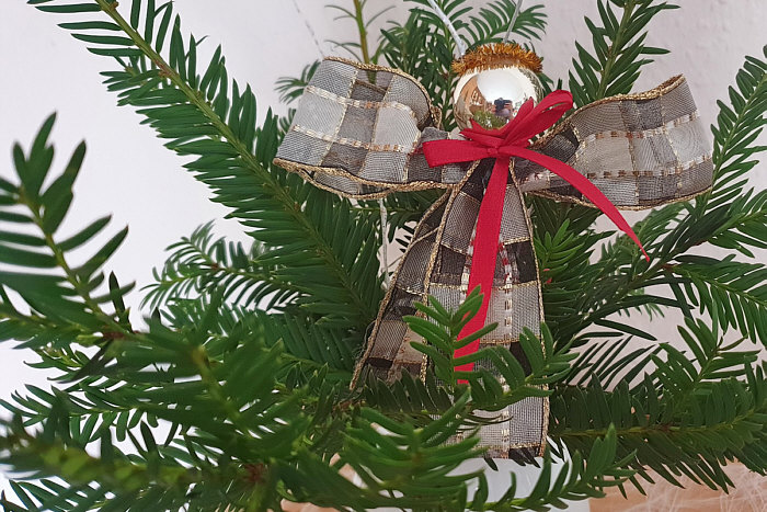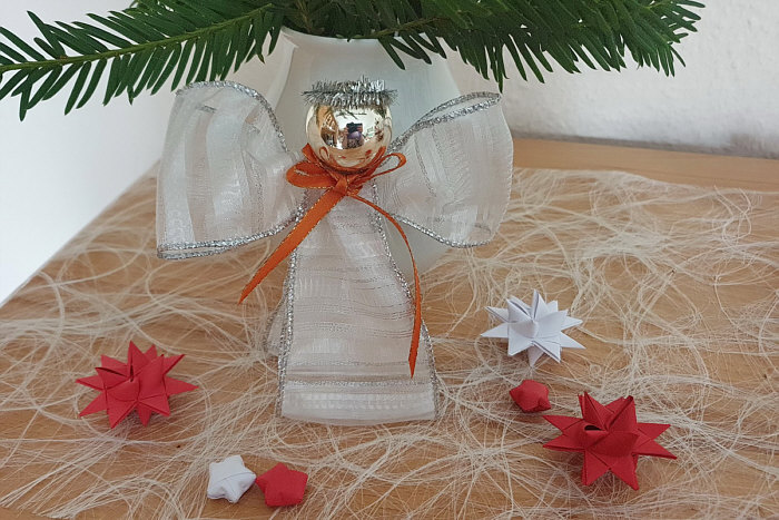 diese edlen Schleifenengel machen. Als Kopf dient eine kleine Christbaumkugel.