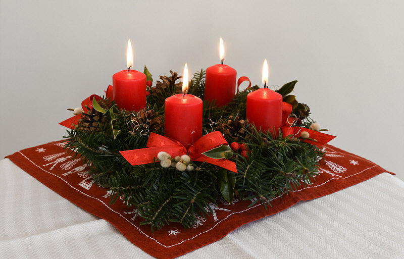 und dem selbst gebundenen Adventskranz von Ingolfs Nachbarin.