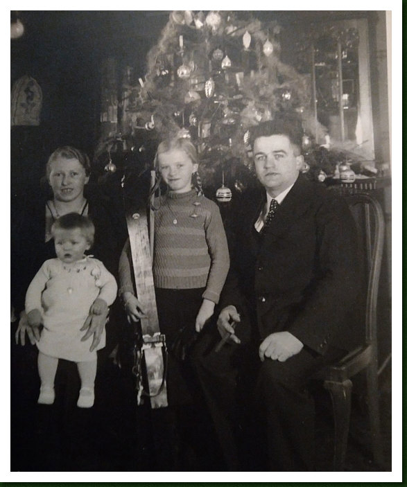 Weihnachten früher 1936 ... links die Oma von ReginaE, davor die Tante, in der Mitte Reginas Mutter im Alter von 10 Jahren, rechts der Opa. Die Oma war damals 30 und der Opa 34 Jahre alt. weiter