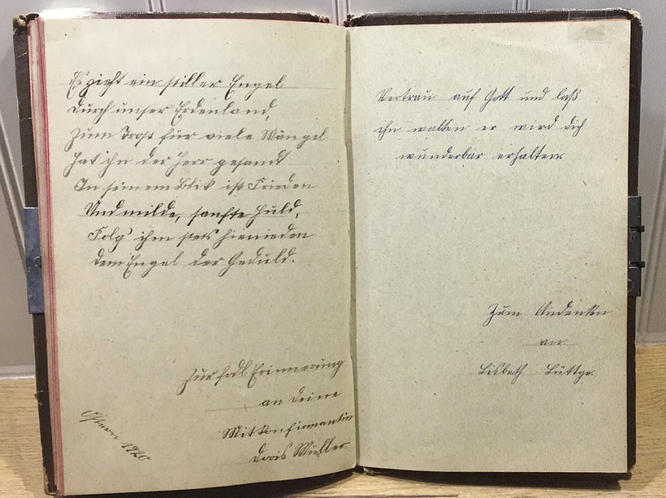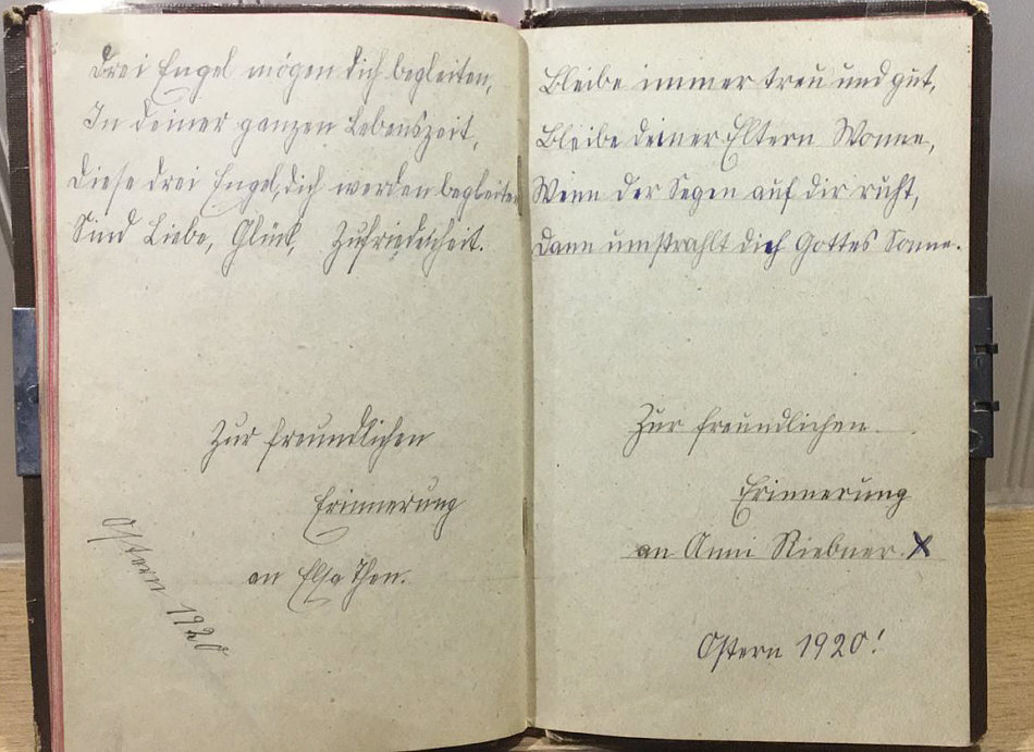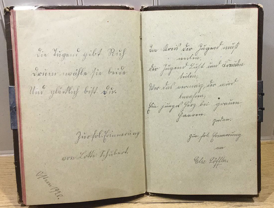 Katrins ganz großer Schatz Teil 3 - Folge 3 ![]() Rechts, das ist das Poesiealbum von Katrin ... aus dem Jahr 1977. In der Mitte ist das Poesiealbum von Katrins Mutter ... aus dem Jahr 1946. Und links das ist das Poesie-Album von Katrins Oma ... aus dem Jahr 1919. Heute blättern wir im Album von 1919: ![]() Folge 3 von diesem schönen Album: ![]() ![]() ![]() ![]() ![]() ![]() ![]() ![]() ![]() ![]() ![]() Danke, Katrin, für diesen wunderbaren Schatz :)). |