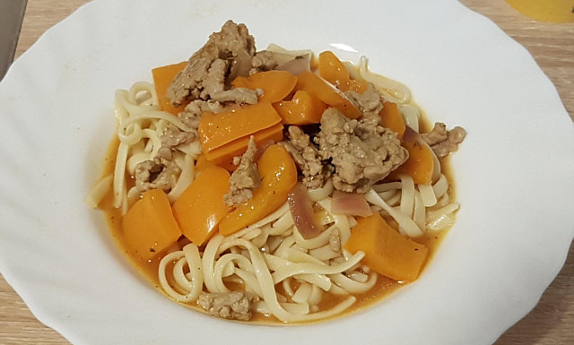 Paprika-Hack-Pfanne mit Tagliatelle.