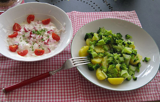 Radieschencreme, Pellkartoffeln, Brokkoli