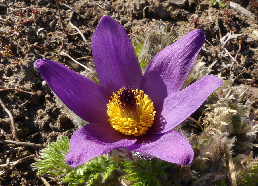 Lilagelbes Leuchten bei der Kuh- bzw. Küchenschelle.
