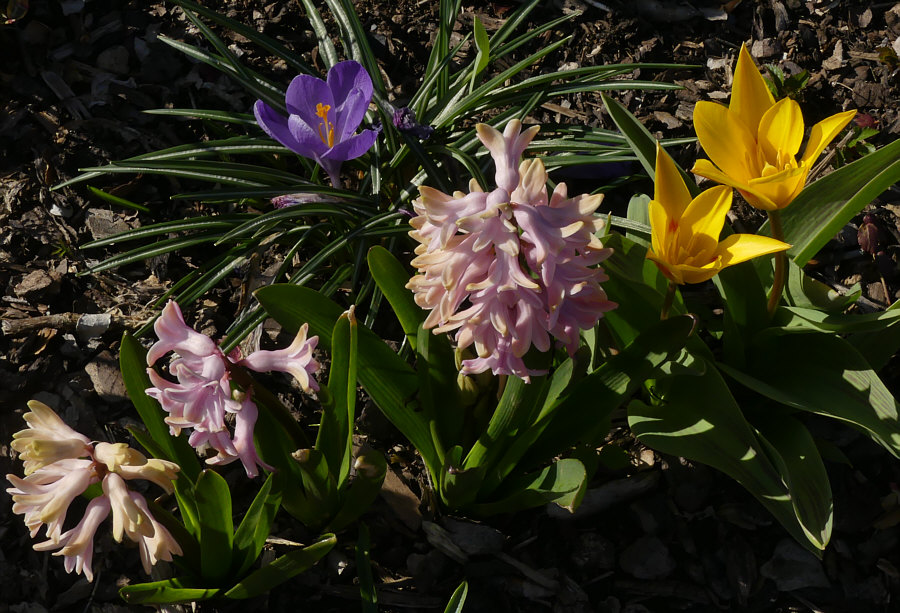 Schöne Zusammenstellung mit Krokus, Tulpen und Hyazinthen.