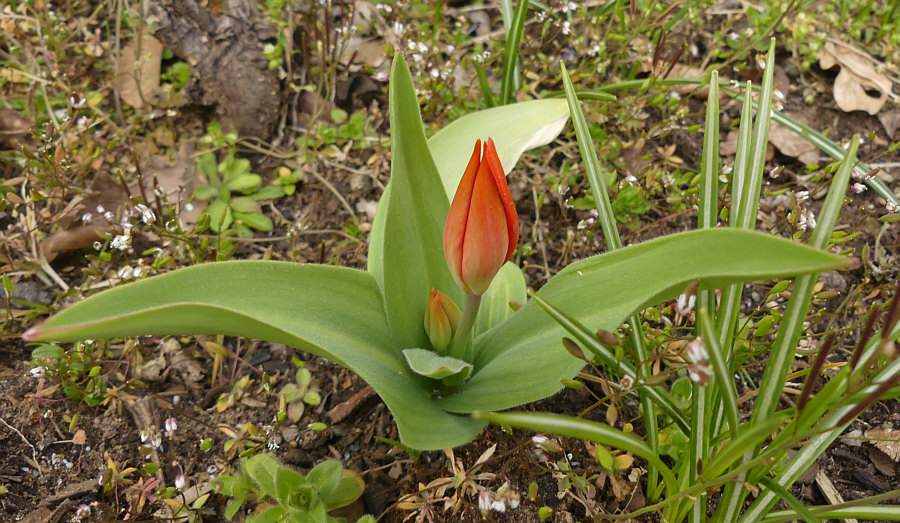 Die frühen Tulpen blühen schon ... hier als Stern neben Sternchen.