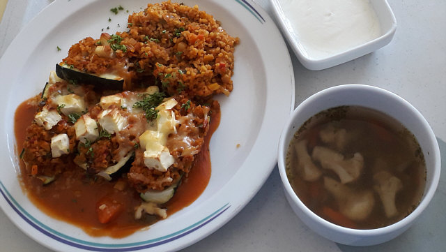 Gemüsebulgur, Quarkspeise.