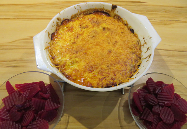 Maccronelli-Bolognese-Auflauf, rote Bete.