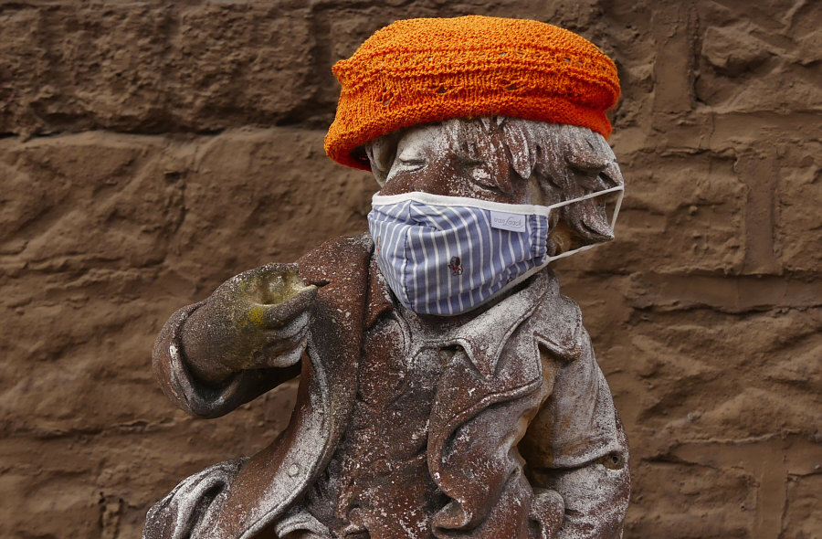 In diesem Vorgarten tragen auch Kuh und Ziege einen Mundschutz.