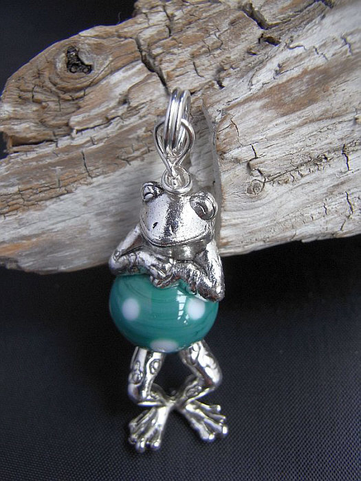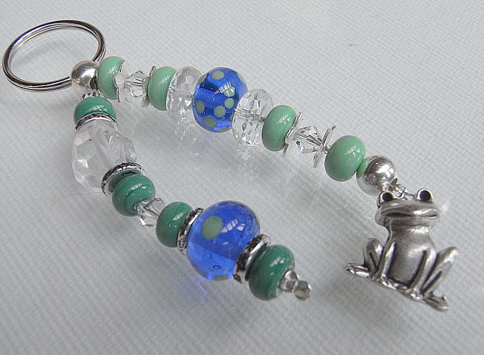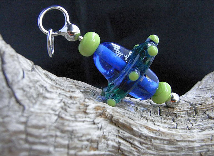 Aus den ersten selbstgedrehten Glasperlen habe ich dann diesen Anhänger/Taschenbaumler