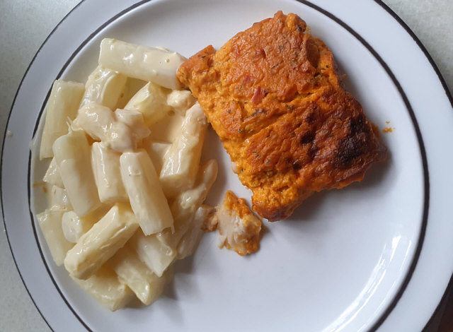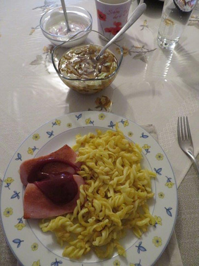 Ketchup drüber und fertig, dazu Eisbergsalat und wie immer Naturjoghurt