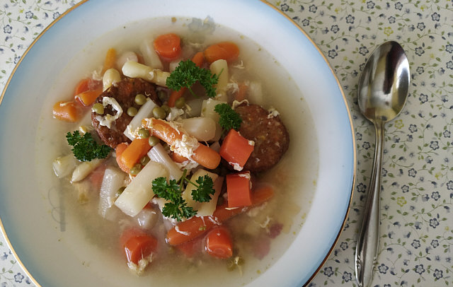 Bei uns gab es heute das, was noch so im (Tief)Kühlschrank war: