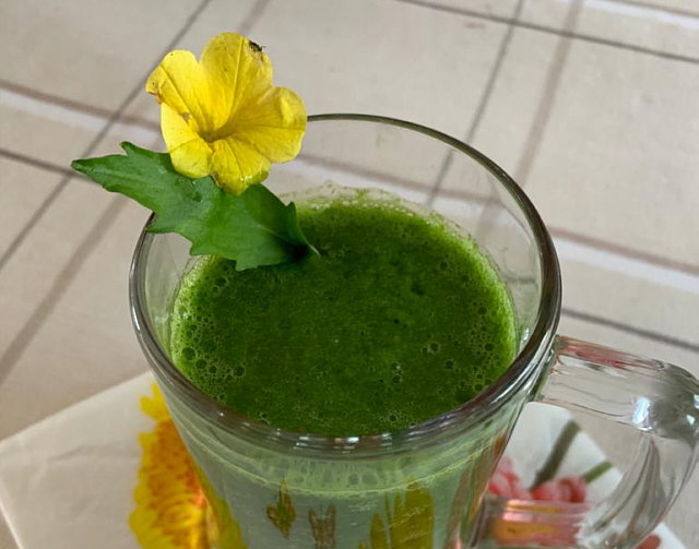 1/2 Banane und 1/2 Apfel und 1 Tasse Wasser.
