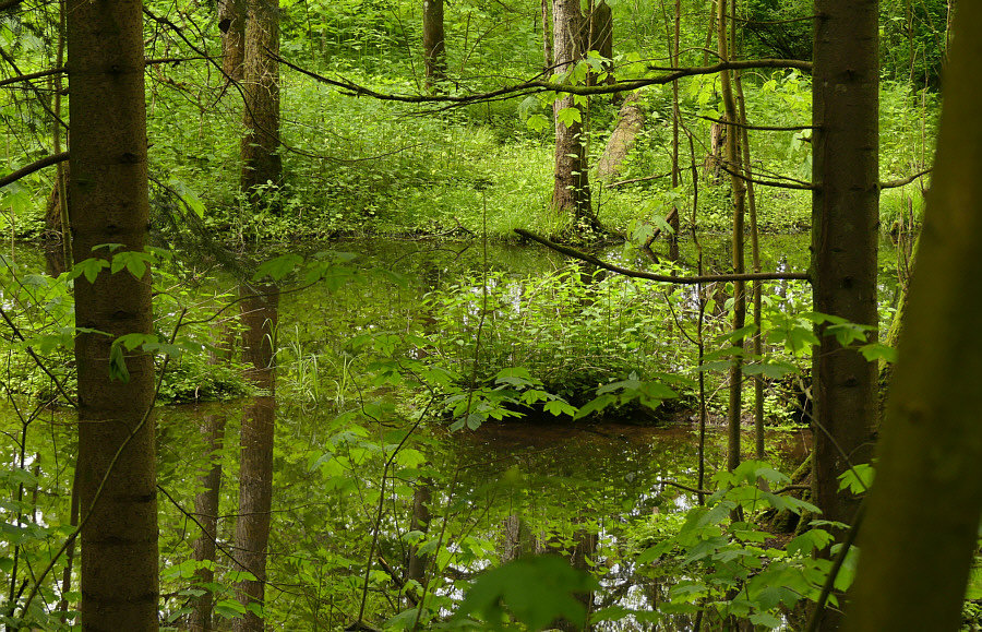 ... man sieht an vielen Stellen Wasser, doch die Bäume stehen so dicht,