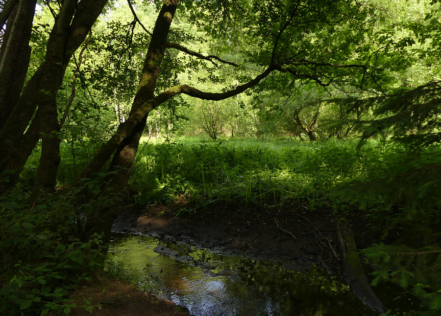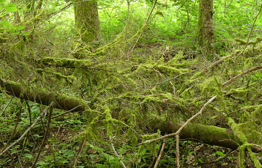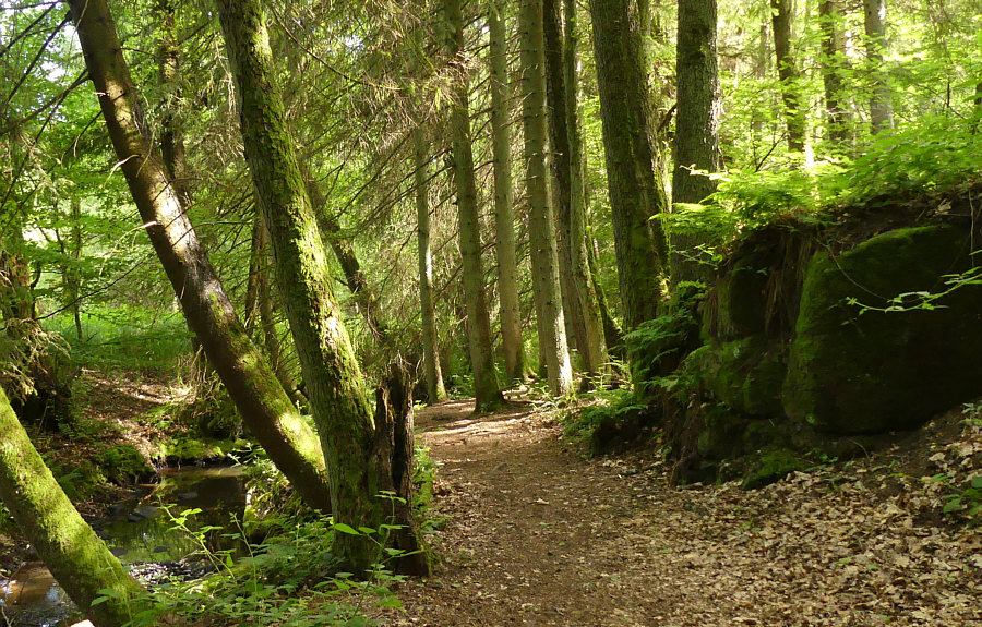 Durch den Bach ist es hier so feucht, dass es ganz viel Moos und
