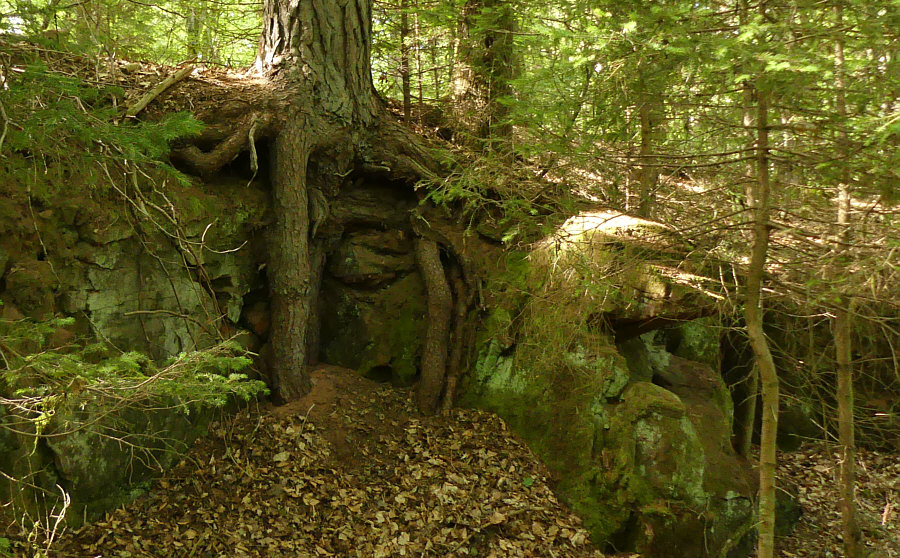 Bäume, die auf Steinen wachsen mit großen Wurzeln.
