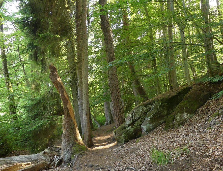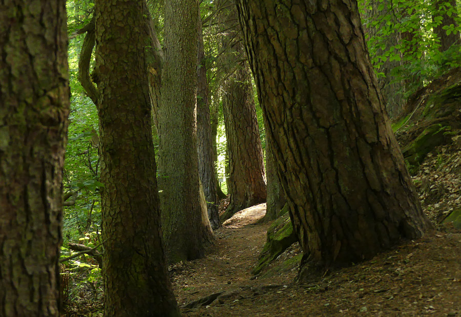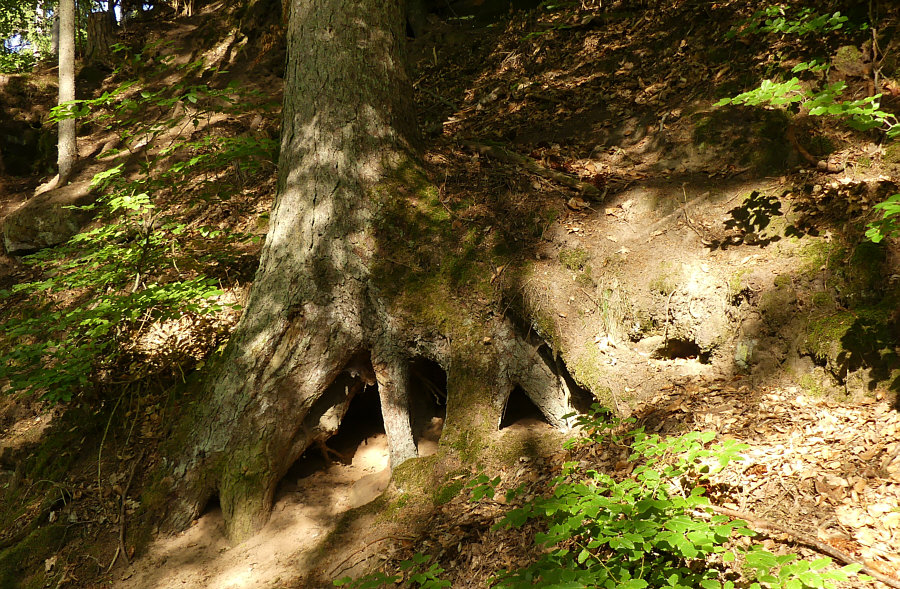 ... sind die nächsten Meter. Alte Bäume, die auf Steinen wachsen.