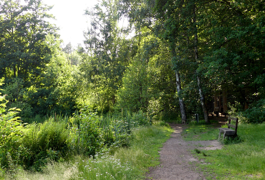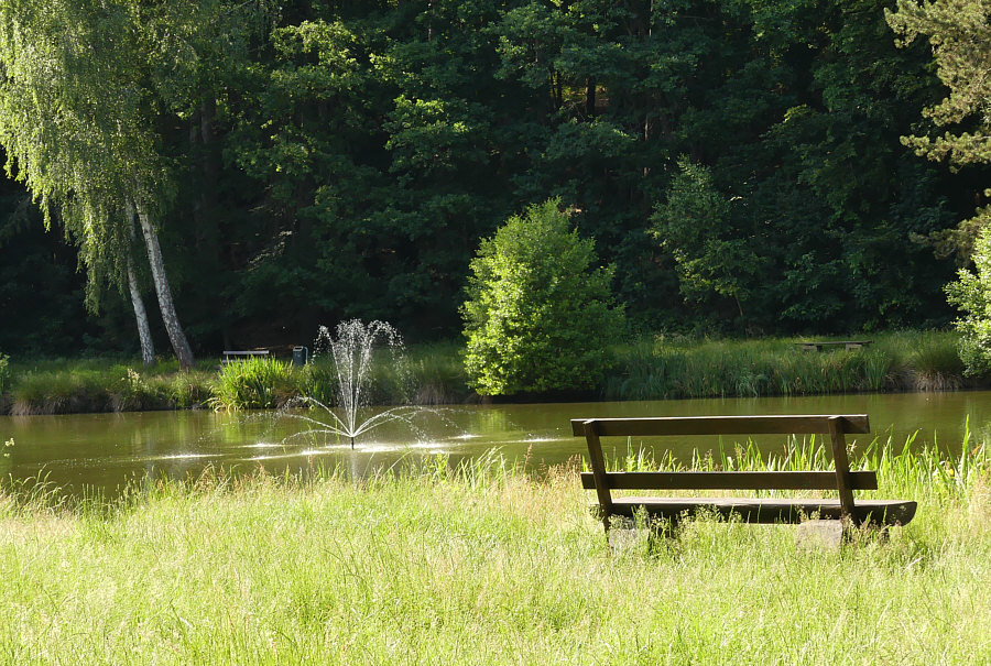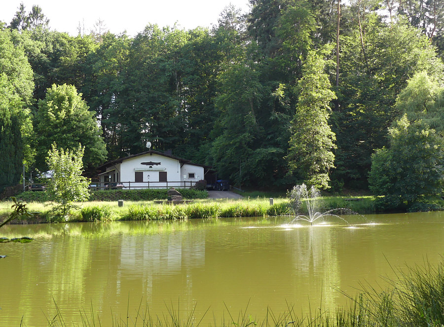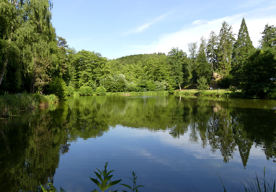 Bald öffnet sich das Gelände und wir erreichen einen Fischweiher.