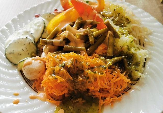 ich hatte Gemüse in Creme fraiche und geriebenen Käse, die Kinder