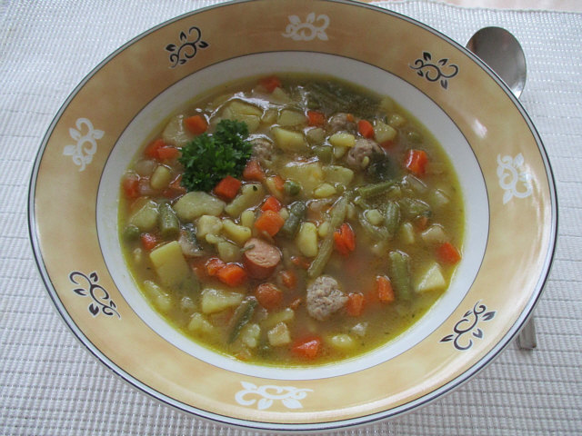 Mittags Hühnerbühe-Suppengemüse-Suppe.