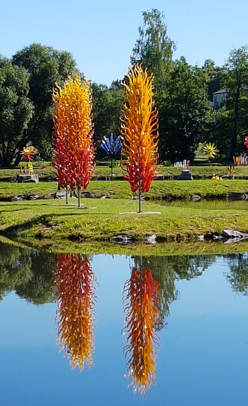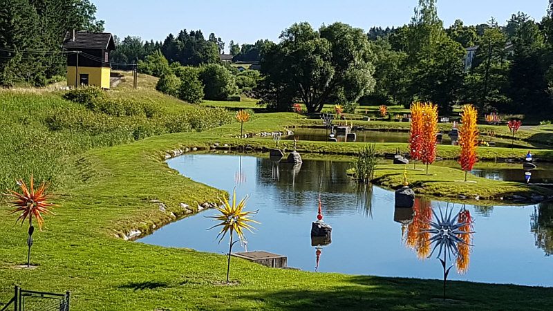 Zitat Wikipedia: "Durch den Holzreichtum einerseits und den vorhandenen Quarz (oder Kies, wie er hier bezeichnet wird) entstanden zahlreiche Glashütten. Einige dieser Manufakturen haben sich bis heute erhalten und spielen nach wie vor eine wirtschaftliche und kulturelle Rolle. Mehrere Glasmuseen erinnern an die Geschichte dieses Wirtschaftszweigs. Wir sind heute hier: ![]() Im österreichischen Waldviertel. Dort gibt es den Ort Nagelberg. Ein Ort mit langer Glas-Tradition. Eine Glaserei, die es heute noch gibt, ist die Glaserei Apfelthaler. Sie lädt auf Ihrer Webseite mit diesen Worten ein: "Wir sind ein Waldviertler Familienunternehmen in Alt-Nagelberg, bestehend aus Senior-Chef und Senior-Chefin, 4 treuen Mitarbeitern und unserem Chef. Wir schleifen, gravieren, bemalen und produzieren seit 30 Jahren Glas in Handarbeit. Auf Gartenartikel, Trinkgläser und jegliche Dekorationsartikel wie ausgefallene Vasen in allen Größen, Schalen und Glastiere haben wir uns spezialisiert. Jene Waren entstehen bei uns täglich in der Glashütte. Kommen Sie zu uns und erleben Sie in der Glashütte die kreative und abwechslungsreiche Arbeit der Glasbläser. Als Höhepunkt Ihres Aufenthalts bieten wir Ihnen einen Glaspark mit 3 Teichen, dutzenden Glasskulpturen und schattige Entspannungsoasen. Außerdem kann man dort ein Glasmuseum besichtigen, das größte private Glasmuseum in Österreich. Mit originalen Kirchenfenstern, Glasstürze, bemalten Biedermeier-Gläsern und anderen Kuriositäten aus der Geschichte des Glases. Und man kann selbst Glas blasen. Man kann selbst mal erleben, wie das ist, wenn an heißen Sommertagen die Temperatur vor dem Ofen bis zu 70 Grad erreicht. Besucher können dort eine Durstkugel blasen, welche zur Bewässerung von Pflanzen dient. Im Park dieser Glaserei war Gerti und hat uns Bilder mitgebracht: ![]() ![]() ![]() ![]() ![]() ![]() ![]() ![]() ![]() |
