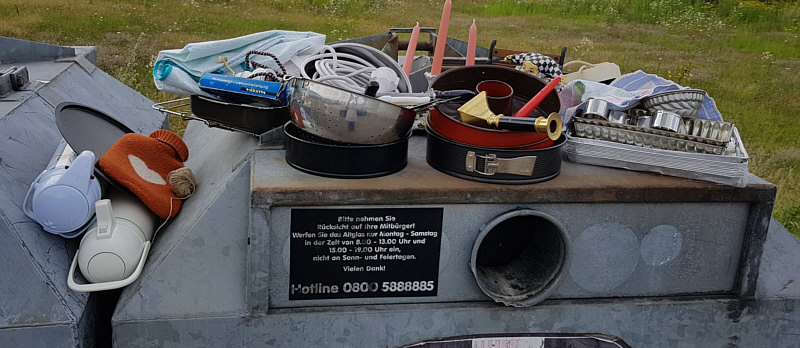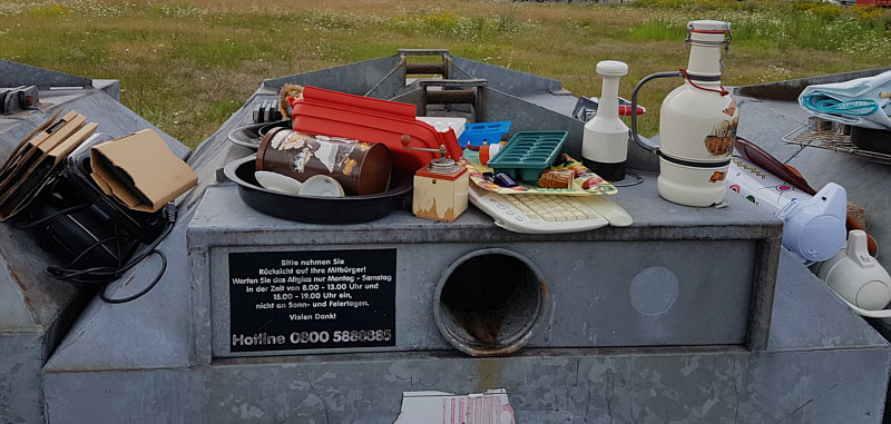 Hier ist es ja normalerweise immer schön ... erbaulich ... man lernt auch mal was dazu. Heute mal nicht. Höchstens wie man es nicht macht. Heute ists mal nicht schön hier. Heute ist es so, wie das Leben eben ist. Denn ich löse das gestrige Lichtblick-Rätsel hier im Kalenderblatt auf. Es geht um diese Tasche ... ![]() ... die da neben dem Weg liegt. ![]() Ich danke Euch für Eure wohlwollende Sicht auf die Menschheit, denn ihr habt (unter anderen Dingen natürlich) geglaubt, da könnten ... - Blätter und Beeren für Tee - Gesammelte Zapfen, Rindenstücke, Steine, etc. zum Basteln - die Apothekenrundschau - gesammelte Pilze - die gerade neu gekauften Medikamente - Obst, Gemüse, so Sachen die gefunden werden sollen, deshalb am Wegesrand - eine Vesper - Tannenzapfen und grüne Äpfel. - Ein Ball - Reste eines Picknicks - leere Schachteln und Beipackzettel des Einkaufs aus der Apotheke. Die Wahrheit ist leider viel schlimmer ... diese Tüte ist bis oben hin voll ... ![]() ... mit stinkenden Zigarettenkippen. Und nein, ich glaube nicht, dass die jemand eingesammelt hat, um Müll zu beseitigen, denn dann wären die auch im Müll gelandet. Da hinten steht die Tasche ... ![]() ... und vielleicht 150 Meter weiter ... ![]() ... steht ein Papierkorb. Dorthin hat Beate die stinkende Tüte auch getragen. Wir waren außer uns, das könnt ihr mir glauben. Wenige Meter vom Papierkorb entfernt ... ![]() ... lagen zwei Turnschuhe. Ja ... der eine davon ... ![]() ... ist kaputt ... da kann man die Schuhe nicht in den Müll werfen, da muss man die Schuhe ausziehen und einfach dort liegen lassen, wo man sie ausgezogen hat ?? Irgendein Dumdödel räumt sie ja sicher weg. Diese Bilder sind vom letzten Sonntag ... weils thematisch so schön passt, zeige ich noch weitere fünf Bilder, die ich Anfang voriger Woche bei unseren Altglascontainern fotografiert hatte: ![]() ![]() ![]() ![]() ![]() Ich könnt kotzen !! |