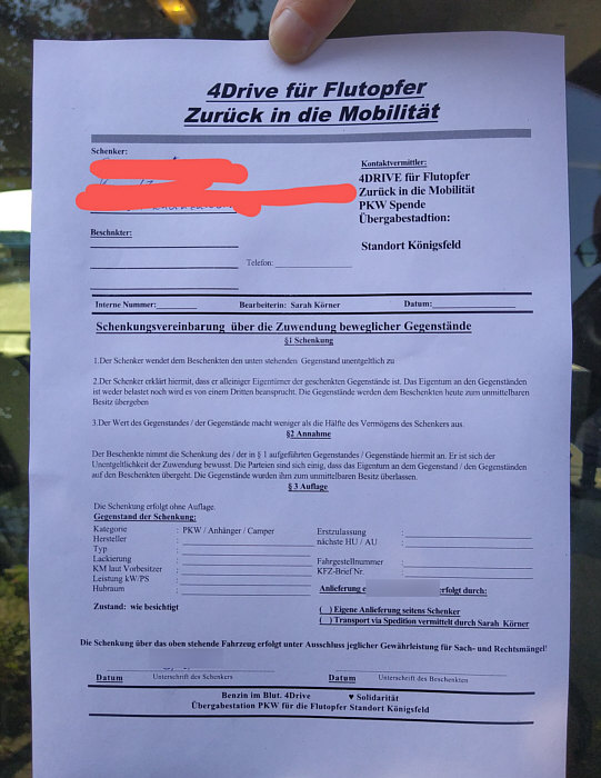 ggf. den TÜV erneuern und dann an Flutopfer weitergeben.