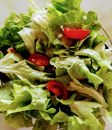 Der Fisch wurde meliert gebraten. Dazu gab es noch Grünen Salat und eine