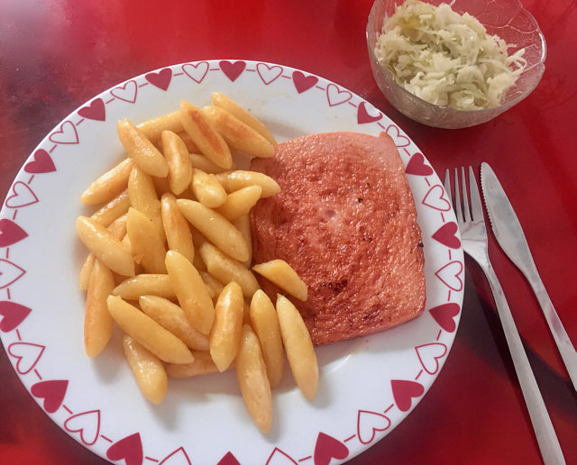 Es gab Reste-Essen: Habe aus den Kartoffeln Bratkartoffeln gemacht