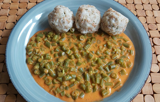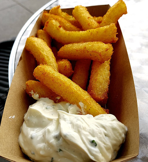 Dort gab es Pommes aus Kloßteig mit Kräuterschmand.