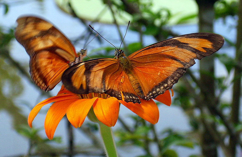 Sind so wunderschöne Tiere ... ... heut ist: Schmetterling-Tag Es gibt leider immer weniger davon und wir kennen ja nur die, die sich bei uns blicken lassen. Heute stelle ich Euch mal ein paar besonders schöne Schmetterlingsarten vor: ![]() Wo müssen wir hin, um diesen Schmetterling zu sehen ? Nach Afrika, zu den Wäldern an der Westküste nördlich vom Äquator. Dieser hier wurde in Ghana fotografiert. Ich hab leider keinen deutschen Namen gefunden. Im selben Nationalpark fotografiert wurde dieser Schmetterling ... ![]() ... das ist das Weibchen ... das Männchen sieht so aus: ![]() Der Nationalpark, in dem diese Schmetterlinge fliegen, ist der Kakum Nationalpark. Ebenfalls dort zu finden ist dieser Schmetterling ... ![]() ... das ist wieder das Weibchen ... das Männchen leuchtet in gelb: ![]() Noch mal zurück zum blau ... es gibt einen Schmetterling ... ![]() ... der kann ganz normal dunkel erscheinen, wie hier die linke Seite, aber er kann, je nachdem, wie das Licht auf seine Flügel scheint, einen blauen Schimmer haben: ![]() Es gibt auch eine rote Variante: ![]() Dieser Schmetterling hat nicht nur einen deutschen Namen (kleiner Schillerfalter), sondern ... und jetzt kommts ... er fliegt sogar bei uns in Deutschland, bzw. generell in Mitteleuropa. Man findet ihn bei Lichtungen, Schneisen und Ziehwegen in Laubwäldern, an deren Rändern die Pappeln oder Weiden wachsen. Es gibt so unendlich viele Schmetterlingsarten ... einen will ich noch zeigen ... ... welchen soll ich nehmen ? Spontan entscheide ich mich für einen ... ![]() ... den man auch goldenen Oktober nennen könnte, weil er so schön orange leuchtet. Und hier in besonders schönem Licht und sogar auf einer Blüte in gleicher Farbe: ![]() Dieser Schmetterling wird Dryas Iulia, auch Fackel oder Julia genannt. In der englischen Sprache auch übersetzt "die Flamme" oder "orangener langer Flügel". Er fliegt in Texas und Florida und weiter südlich bis nach Bolivien und Brasilien. Er besiedelt Wälder und ist auch häufiger Gast auf einigen Inseln in der Karibik. |