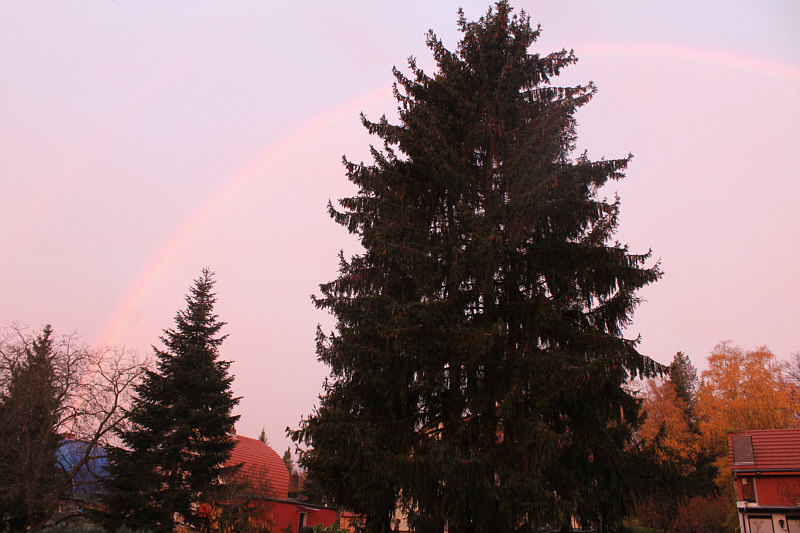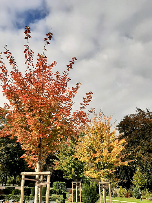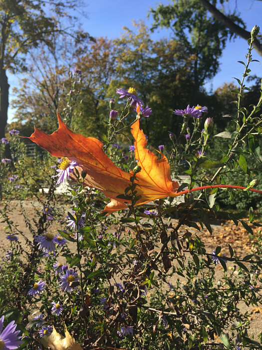 Viele Rosen und Astern blühen noch und die Bäume schmücken sich mit viel