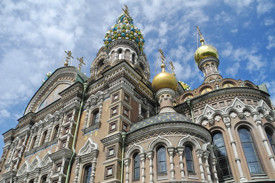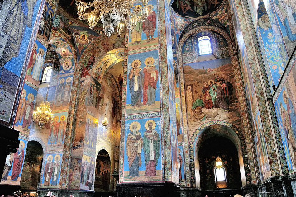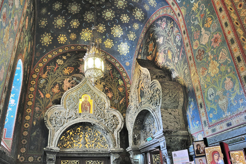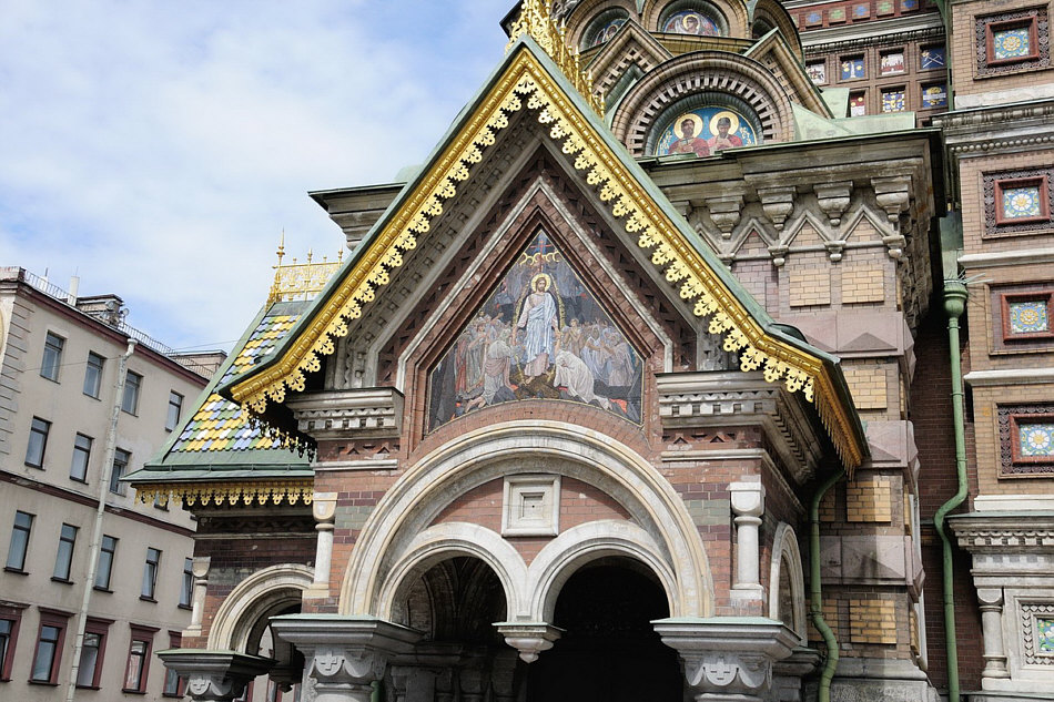 ![]() ![]() ![]() ![]() ![]() ![]() ![]() ![]() Wir sind heute in St. Petersburg ... in der Auferstehungskirche, auch als Blutkirche, Erlöserkirche und Erlöser-Kirche bekannt. Sie ist nach dem Vorbild der Moskauer Basilius-Kathedrale gestaltet und als einziges großes Kirchengebäude der Petersburger Innenstadt, das nicht italienischen und klassizistischen westlichen Baustilen folgt, entsprechend auffällig. Die Orientierung an der ornamentalen und bunten Dekorationsweise der altrussischen Kunst aus der Epoche vor Peter I., die sich der westlichen Kultur noch nicht geöffnet hatte, entsprach der in der zweiten Jahrhunderthälfte am Zarenhof gepflegten Rückwendung hin zu nationalen Traditionen und ist damit dem gleichzeitigen mitteleuropäischen Historismus vergleichbar. Erbaut wurde sie von 1883 bis 1912 an der Stelle, an der Alexander II. einem Attentat zum Opfer gefallen war. Das ist also eine Memorialkirche ... eher zum Gedenken an das Attentat gedacht denn als Gotteshaus. Hier fanden auch nie Gottesdienste statt. Die Kirche steht in der Nähe des Newski-Prospektes am Gribojedow-Kanal. Sie bedeckt eine Fläche von etwa 7000 Quadratmetern; die innere flächendeckende Ausgestaltung im Ikonenstil und äußere Verzierung besteht vor allem aus Mosaiken. Ich zeige mal so ein Bild ... in groß ... ![]() ... und hier im Detail ... ![]() ... das uns zeigt, dass das alles ganz kleine Steinchen sind. Erbaut wurde die Kirche nach den Plänen Alfred Parlands (1842–1919), einem damals in Russland bedeutenden Architekten, der auch in Moskau, Wladimir und anderen Städten baute. Er war Mitglied der Akademie der Künste in Petersburg und entstammte einer deutsch-baltisch-schottischen Familie, die seit etwa 1800 im Dienst des Zaren am Peterhof stand. Die Geschichte der Kirche war sehr wechselhaft. Zuerst war sie Konzerthalle und Museum, später wurde sie als Theater genutzt. In der sowjetischen Zeit sollte sie mehrfach niedergerissen werden und sie war jahrzehntelang für die Öffentlichkeit geschlossen. Erst im August 1997 wurde die 27 Jahre andauernde Renovierung abgeschlossen und das Gebäude unter großer Anteilnahme der Bevölkerung als Museum wiedereröffnet. ![]() ![]() Wie gesagt ... diese Bilder bestehen aus kleinen Mosaiksteinchen. ![]() Willkommen in der Sonntagskirche von Seelenfarben :)). Deine Gedanken zur Kirche und zum Kircheninnenraum ? (Zum Adventsgruß geht es hier entlang) |